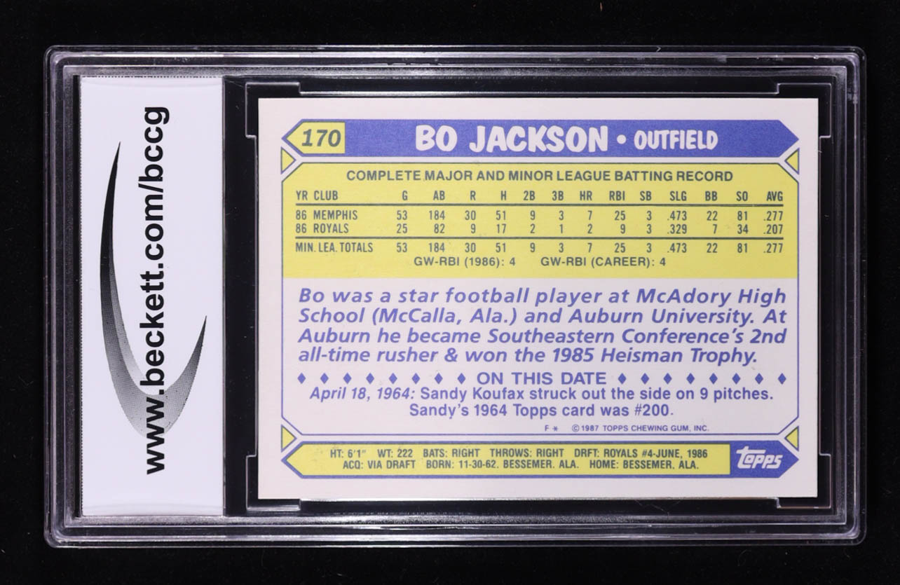 Bo Jackson 1987 Topps Tiffany #170 RC (BCCG 10)