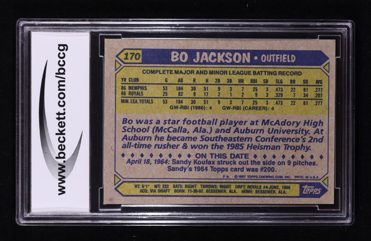 Bo Jackson 1987 Topps #170 RC (BCCG 10)
