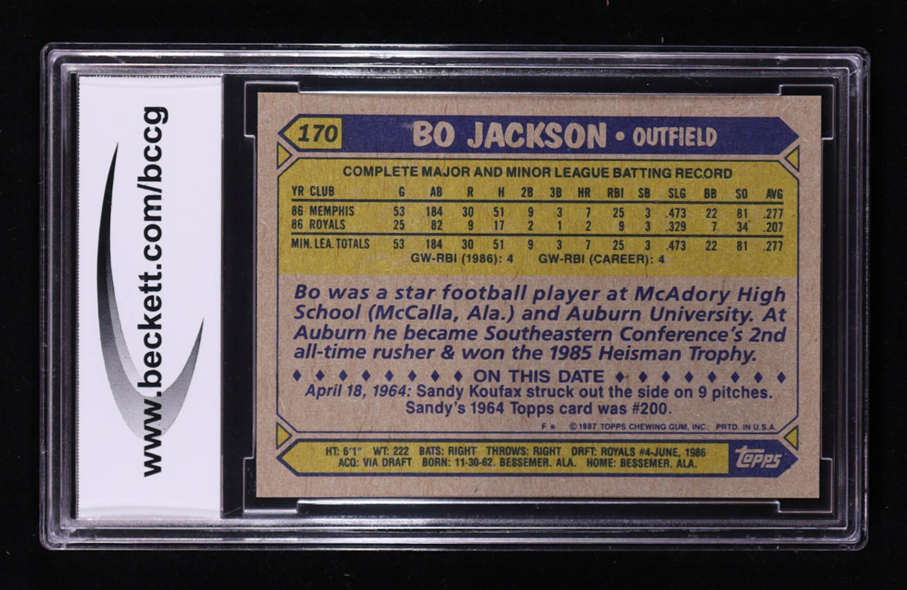 Bo Jackson 1987 Topps #170 RC (BCCG 10)