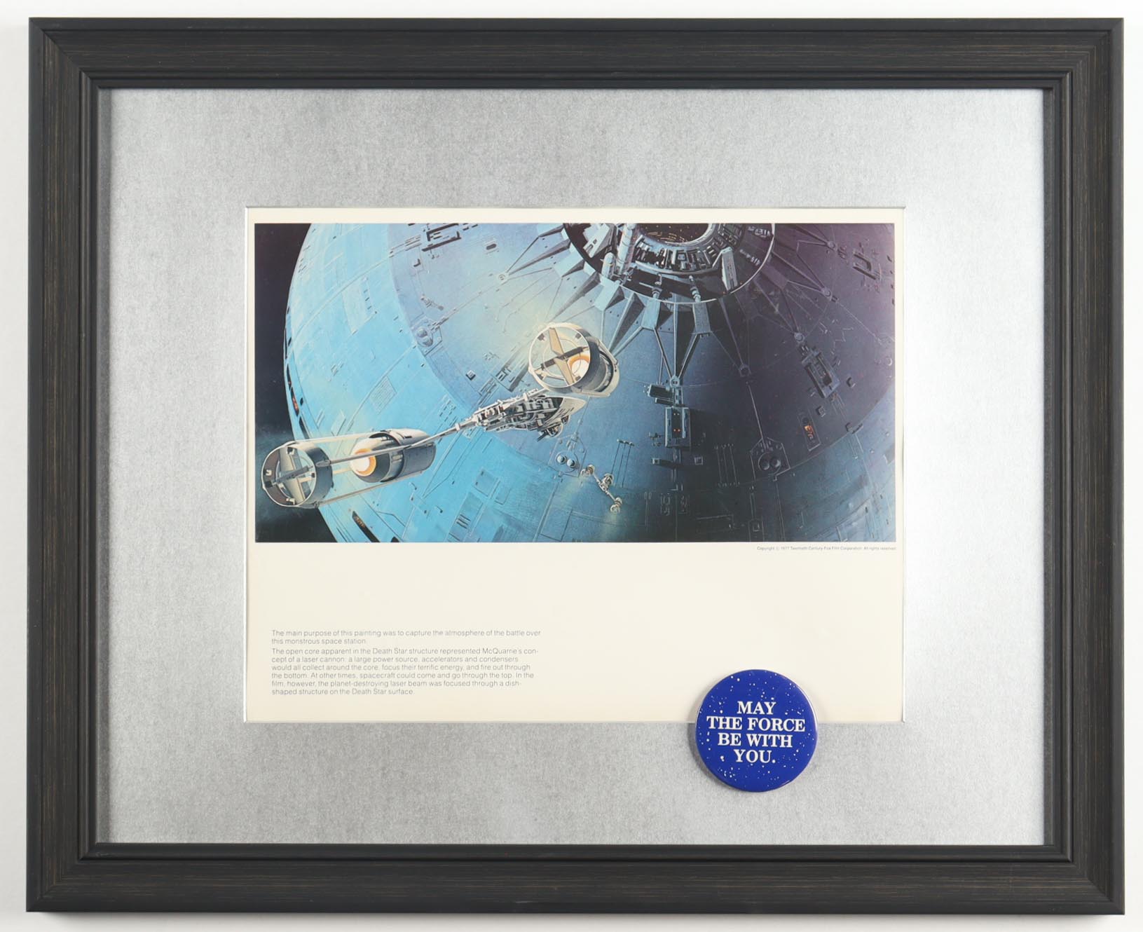 Star Wars "Battle Over the Death Star" 1977 Ralph McQuarrie Custom Framed Pre-Production Art Photo Display with Movie Lapel Pin