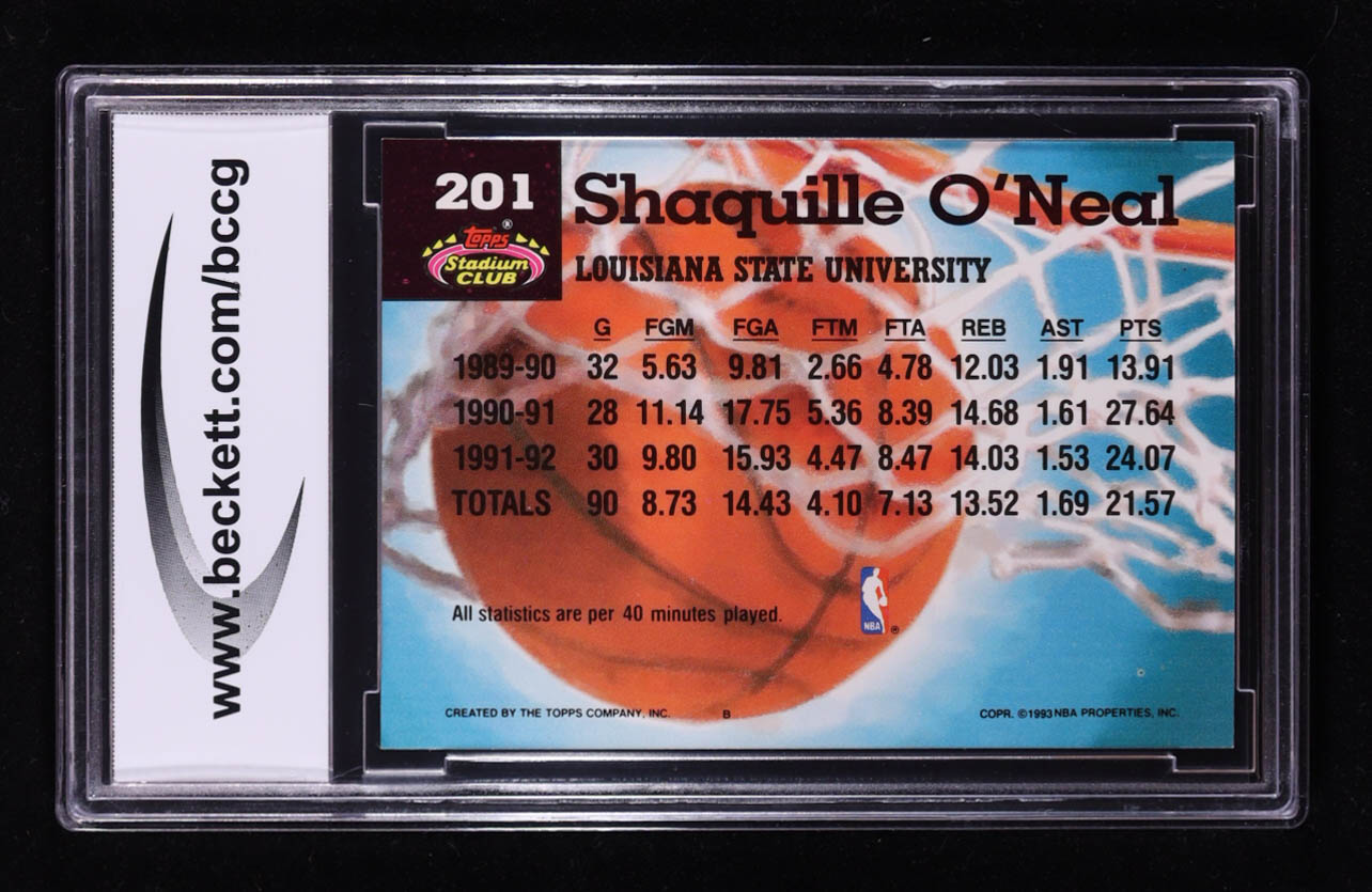 Shaquille O'Neal 1992-93 Stadium Club MC #201 RC (BCCG 10)