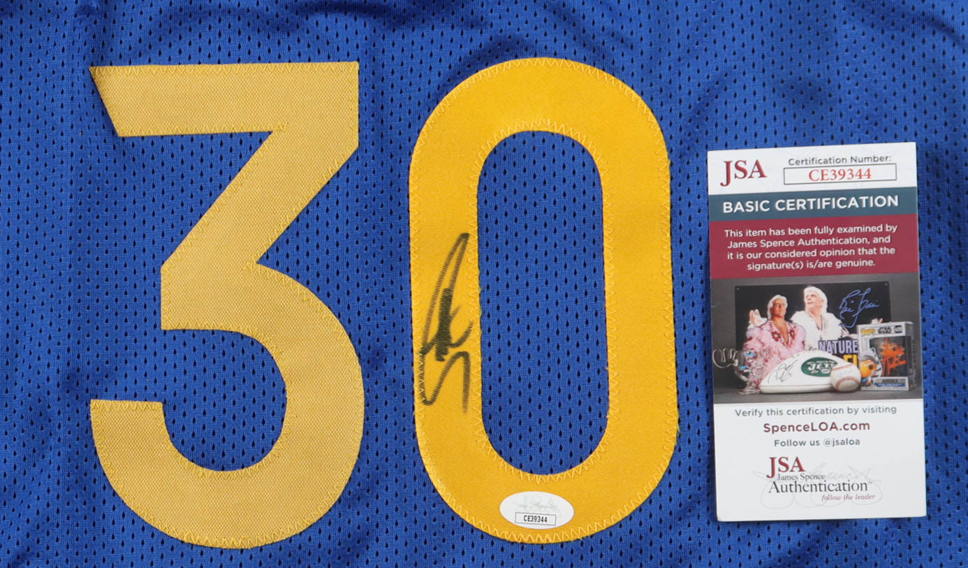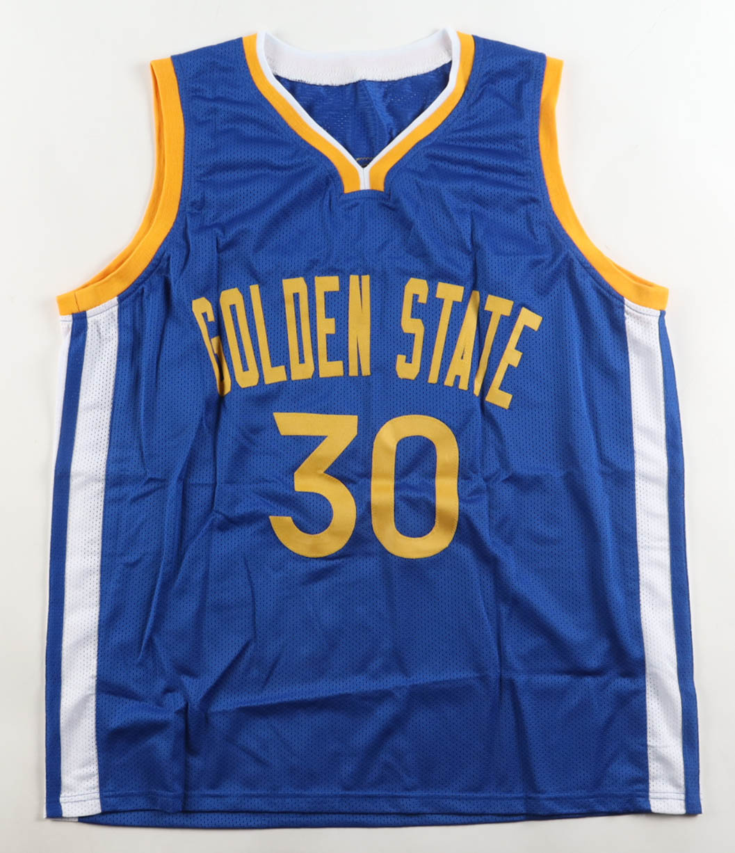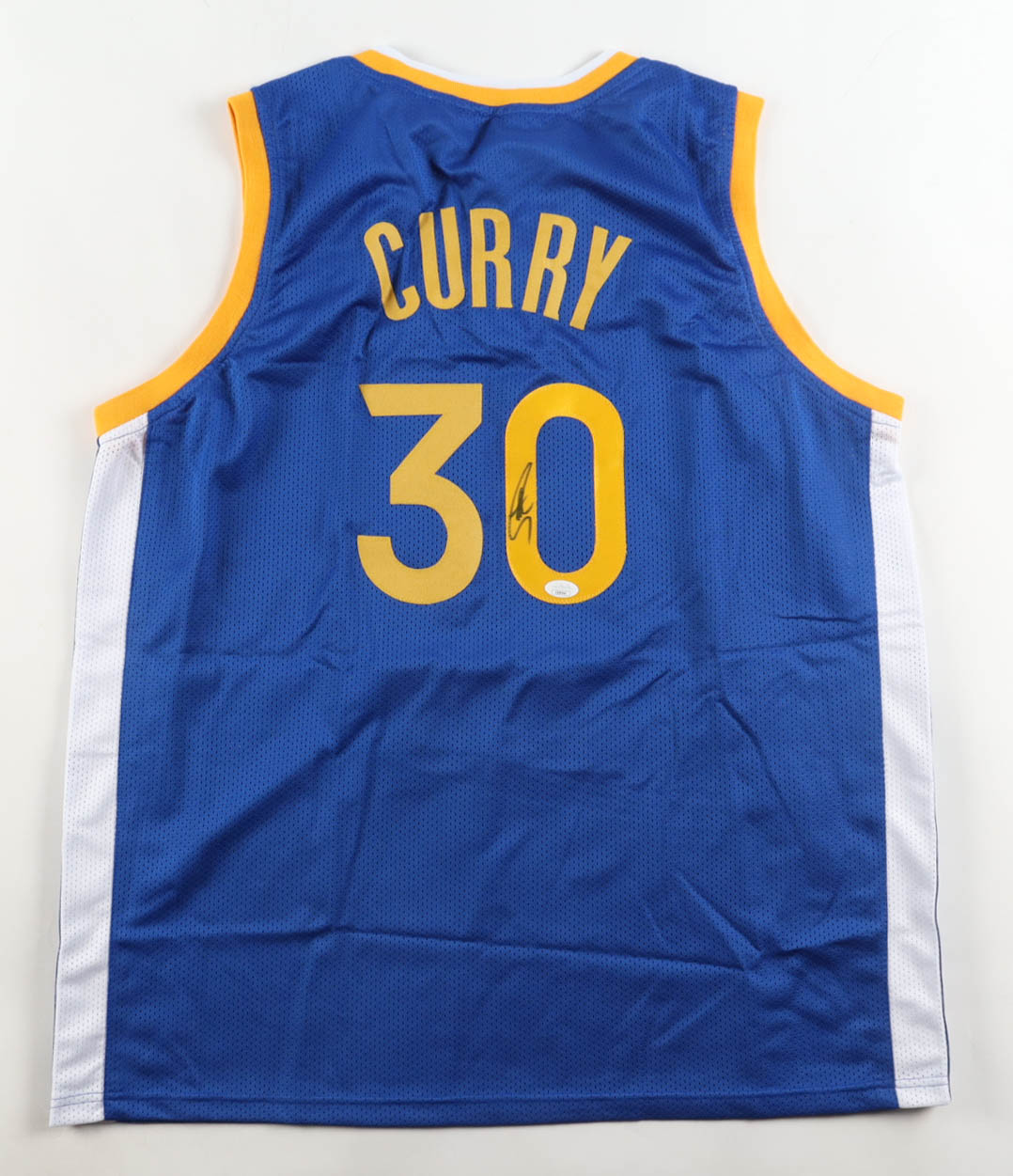 Custom jersey with everything sewn on, size XL. Hand-signed by Stephen Curry.