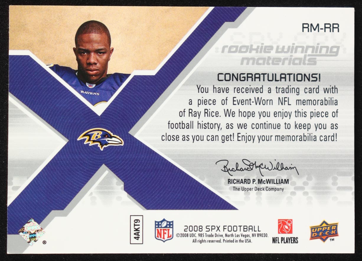 Ray Rice 2008 SPx Rookie Materials Jersey Number Dual 25 Event-Worn #RMRR #19/25 RC