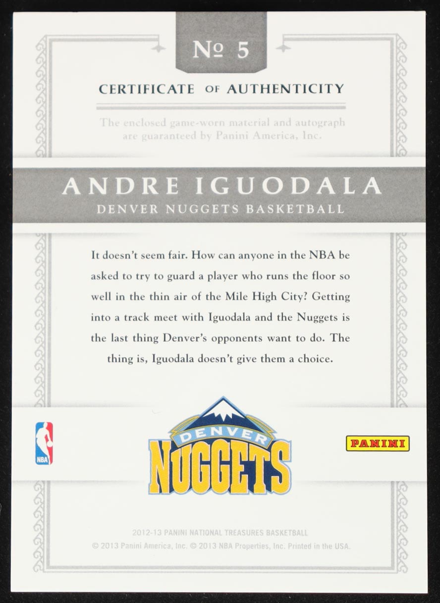 Andre Iguodala 2012-13 Panini National Treasures Timeline Materials Custom Names Signatures Game-Worn Jsy #5 #19/99