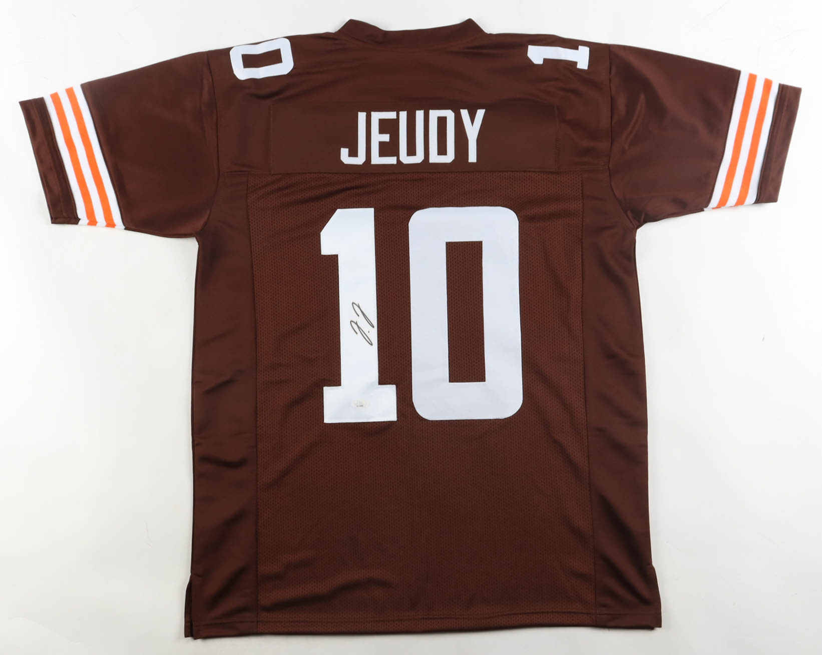 Custom jersey with everything sewn on, size XL. Hand-signed by Jerry Jeudy.
