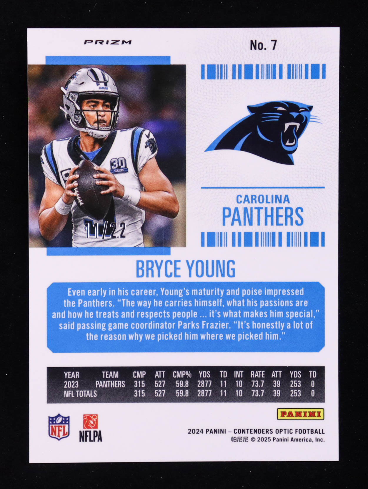 Bryce Young 2024 Panini Contenders Optic Cracked Ice #7 #11/22