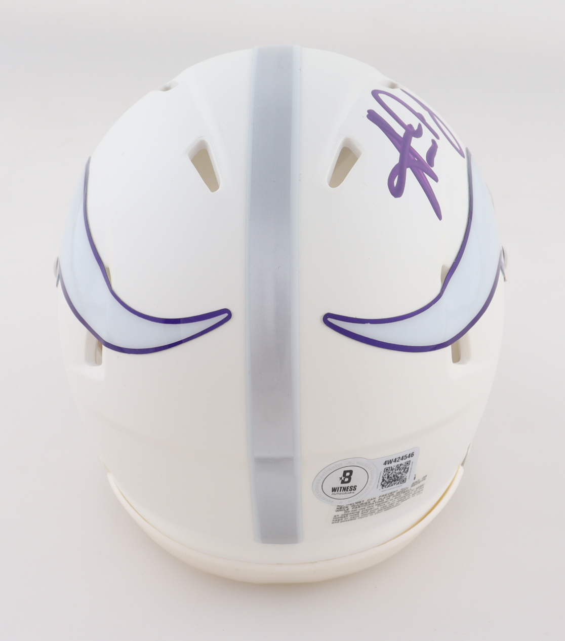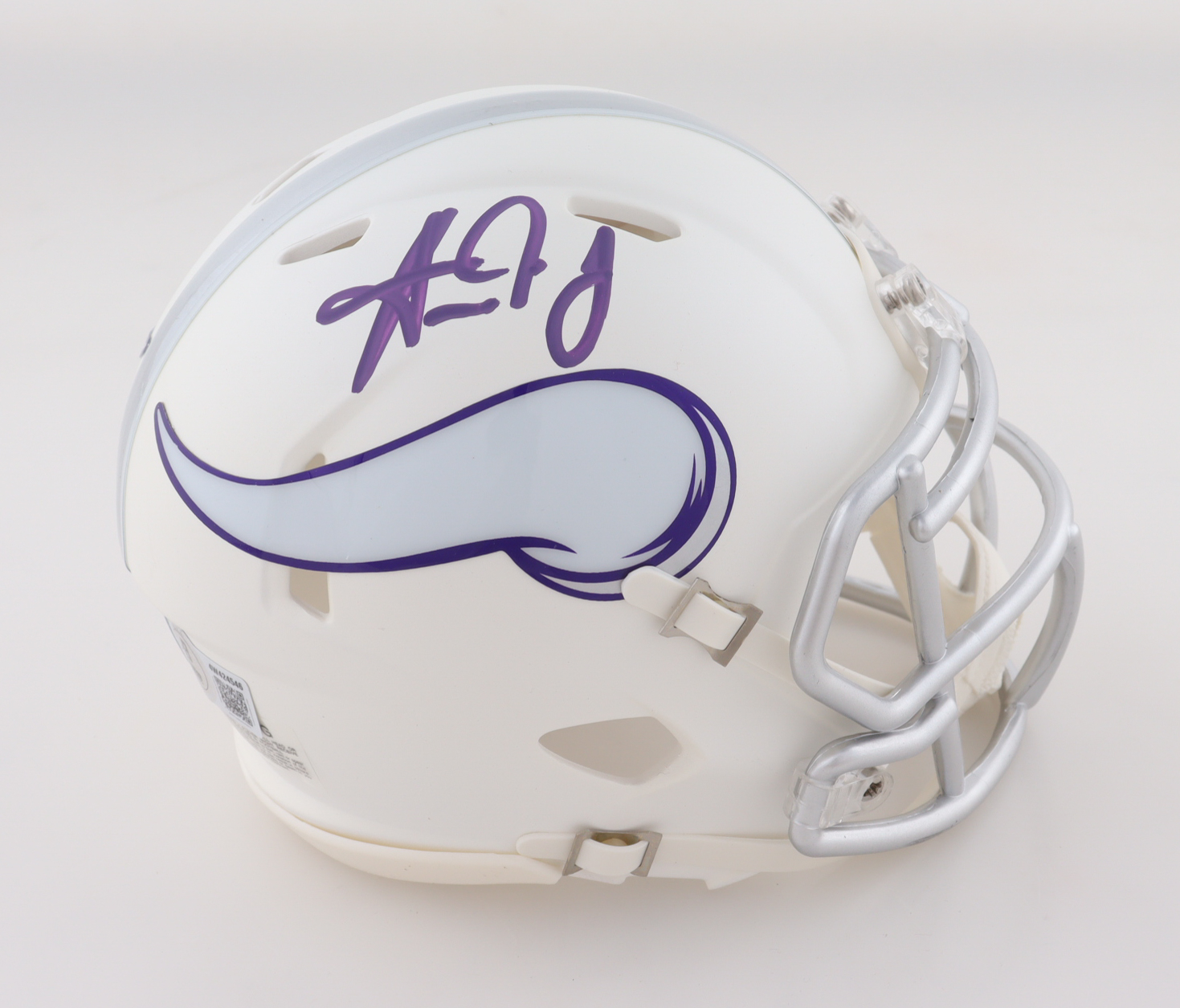 Riddell Minnesota Vikings Speed mini helmet. Hand-signed by Aaron Jones.