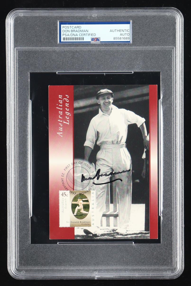 Don Bradman Signed 1997 FDC Postcard (PSA)