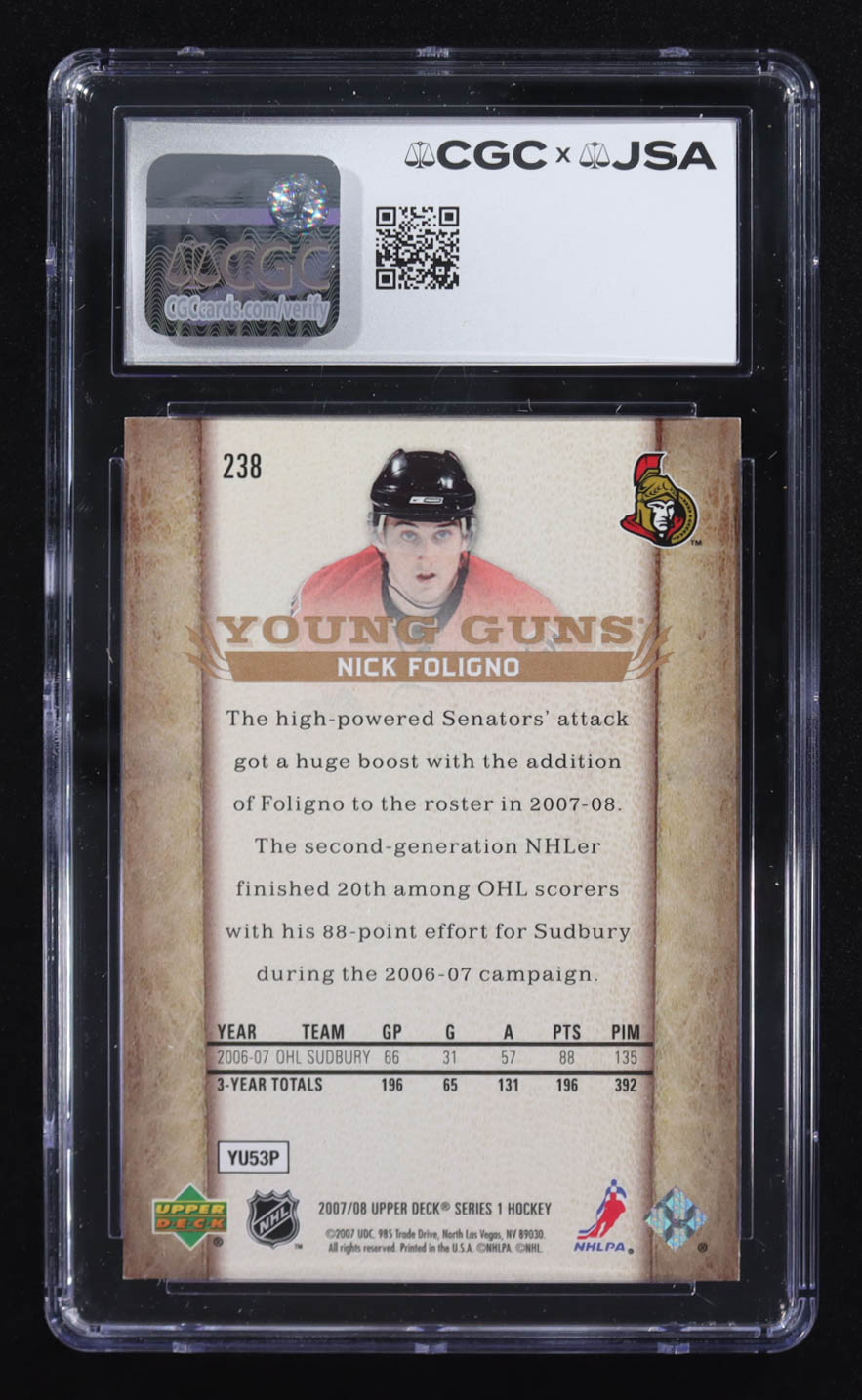 Nick Foligno Signed 2007-08 Upper Deck #238 RC (CGC 8 | Autograph Graded CGC 10)