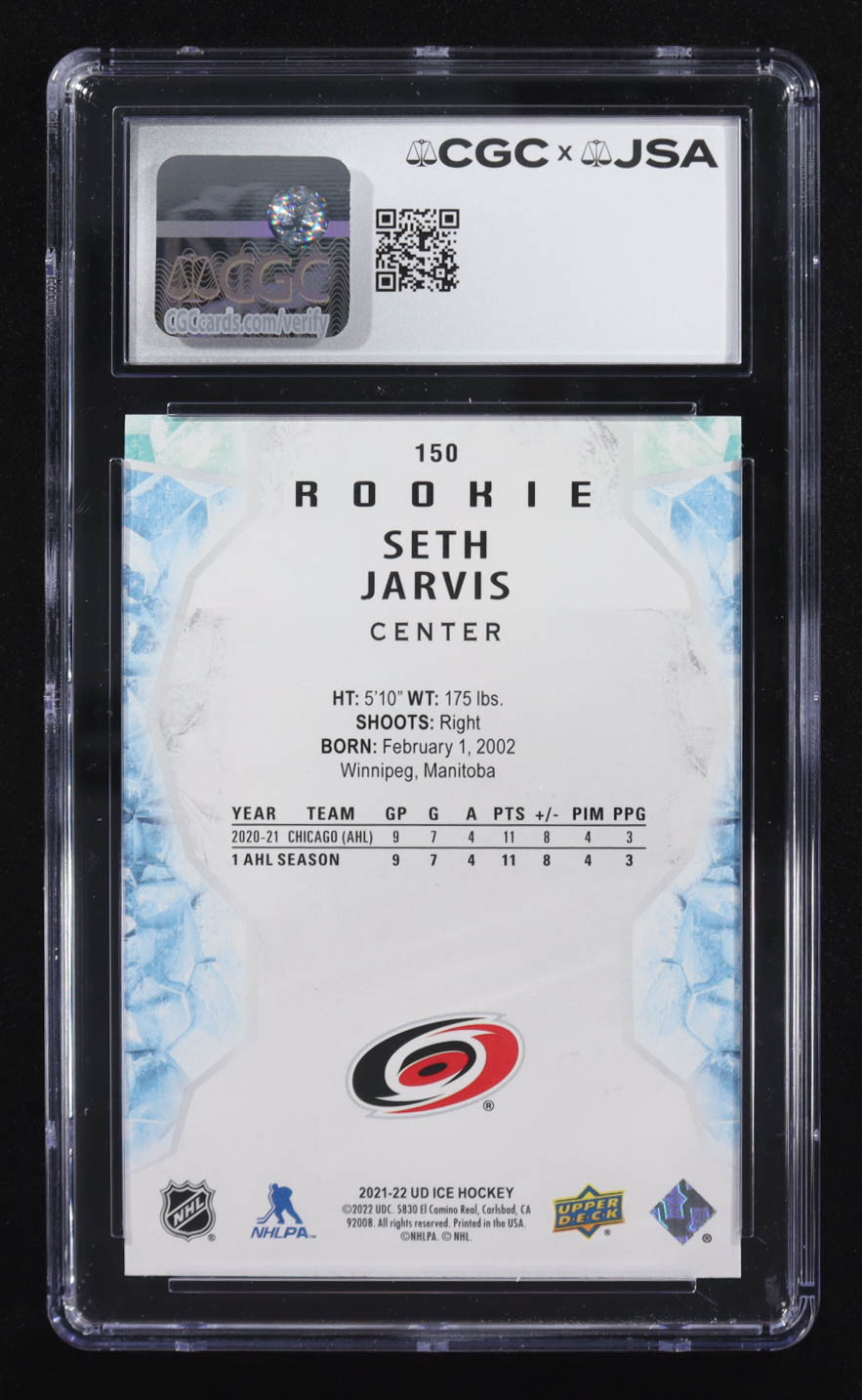 Seth Jarvis Signed 2021-22 Upper Deck Ice #156 RC (CGC 10)