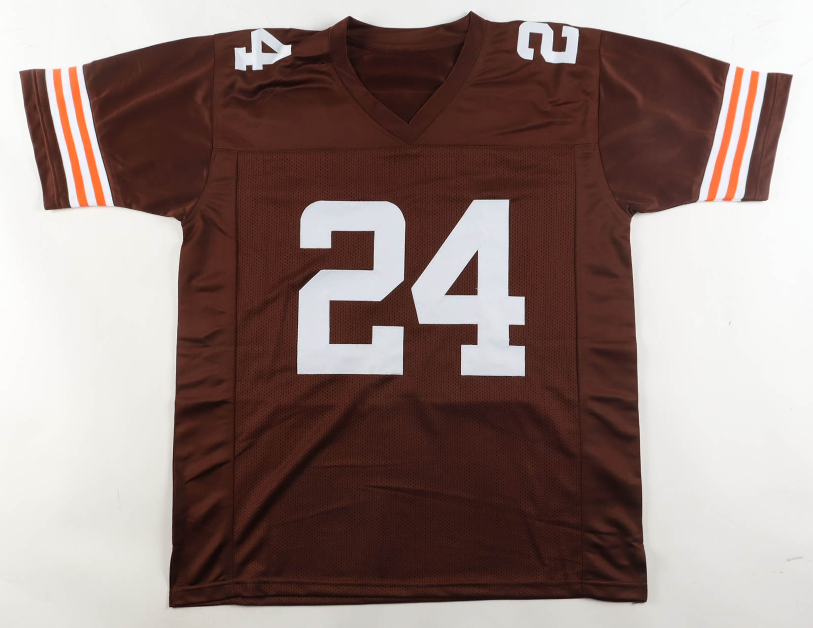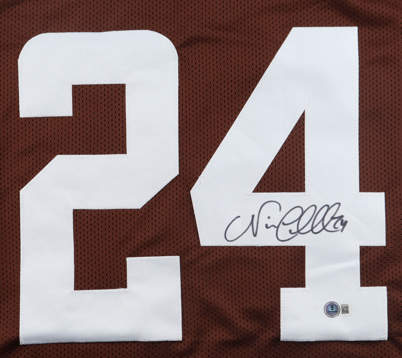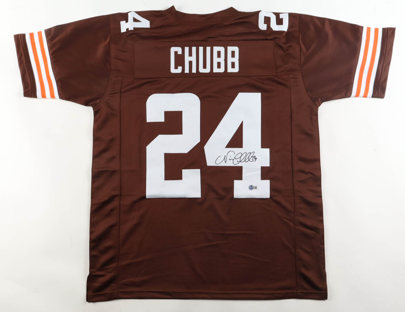 Custom jersey with everything sewn on, size XL. Hand-signed by Nick Chubb.