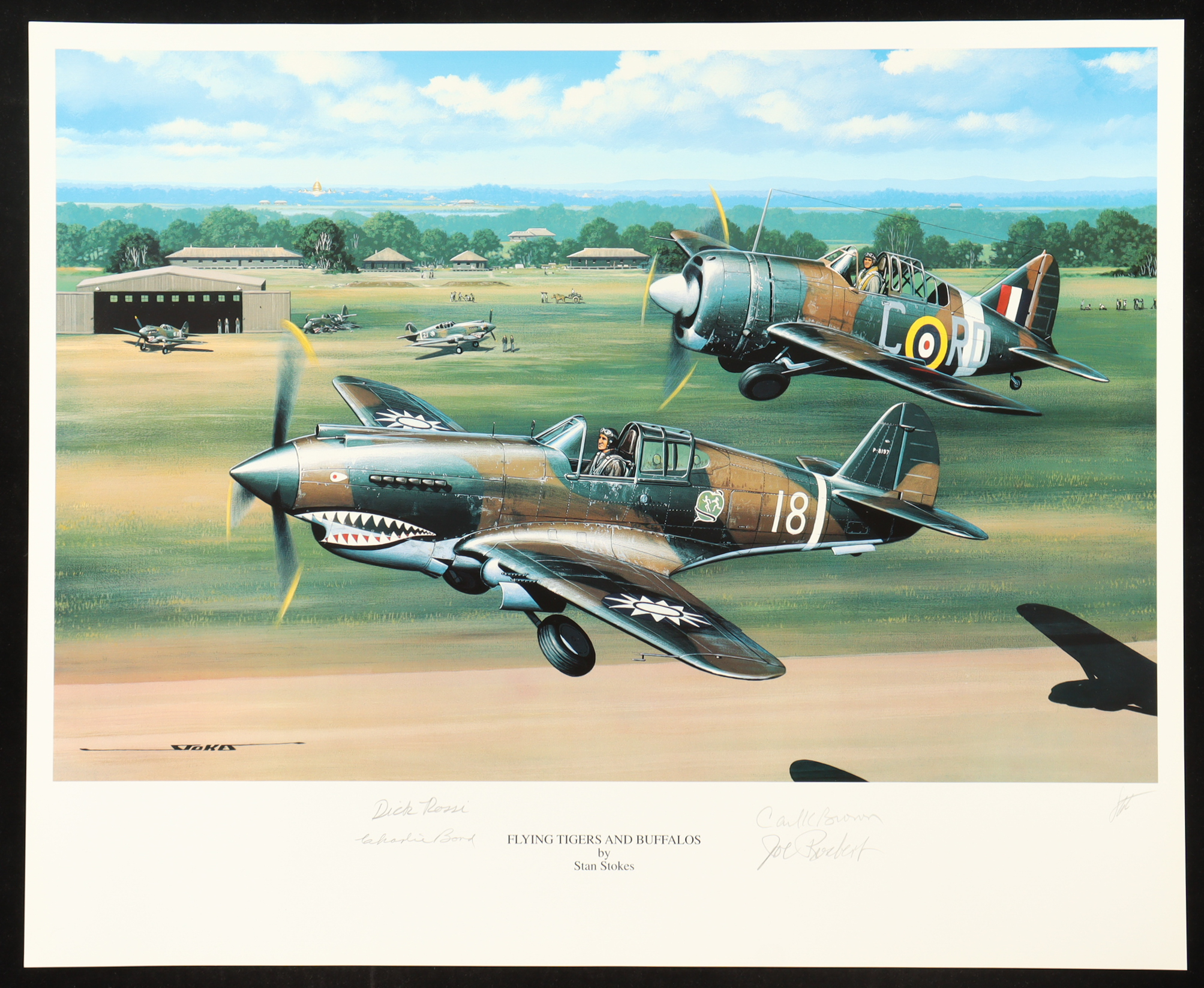Stan Stokes "Flying Tigers & Buffalos" Lithograph Signed By (4) with Dick Rossi, Charlie Bond, Carl Brown & Joe Rosbert (AIV)