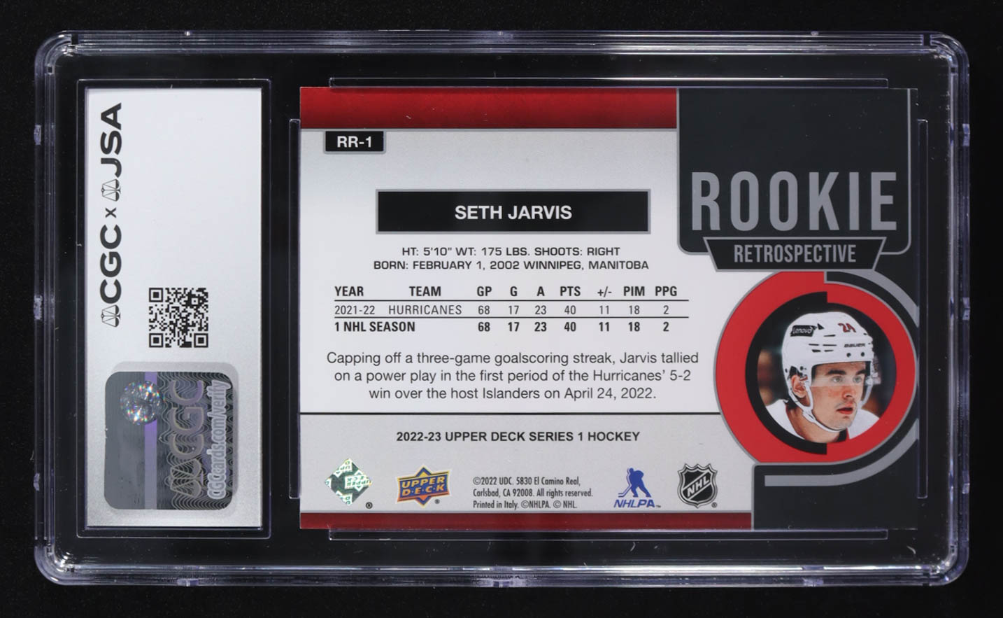 Seth Jarvis Signed 2022-23 Upper Deck Rookie Retrospective #RR-1 (CGC | Autograph Graded CGC 10)