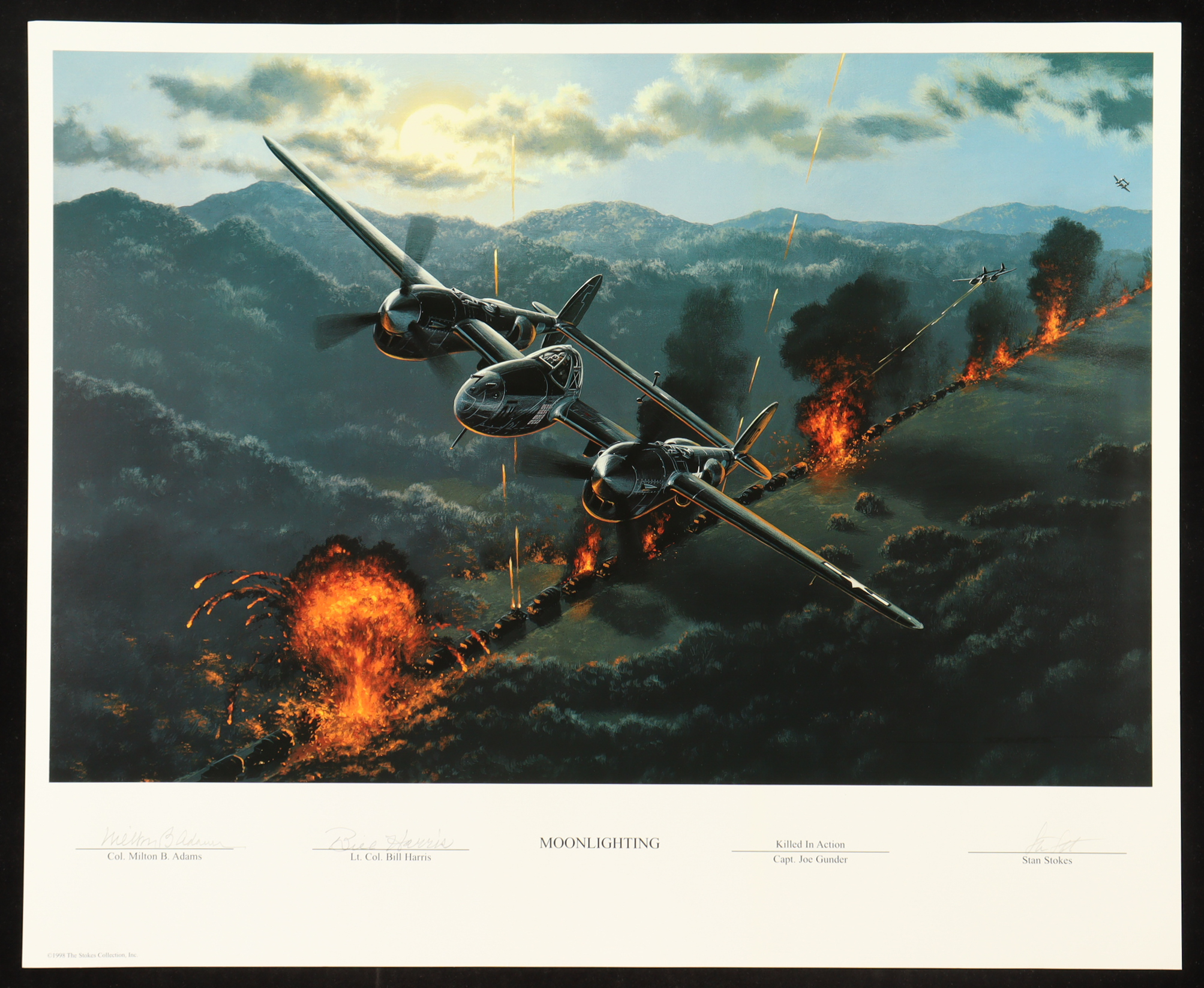 Milton Adams & Bill Harris Signed Stan Stokes "Moonlighting" Lithograph (AIV)