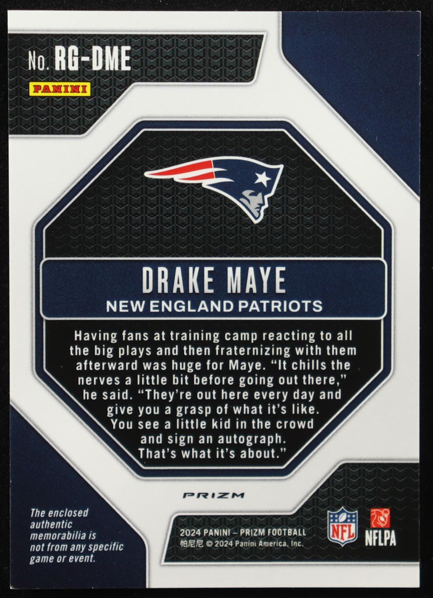 Drake Maye 2024 Panini Prizm Rookie Gear Neon Green Pulsar #6 RC