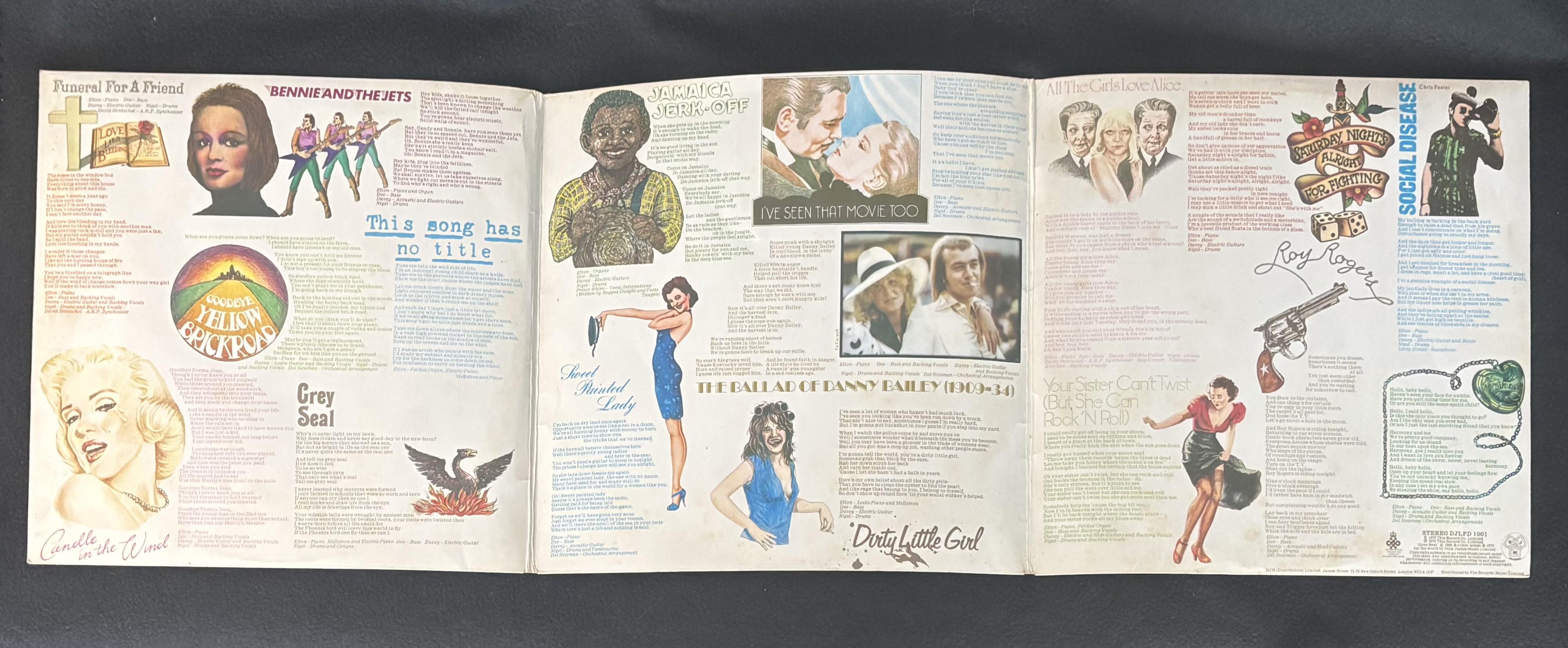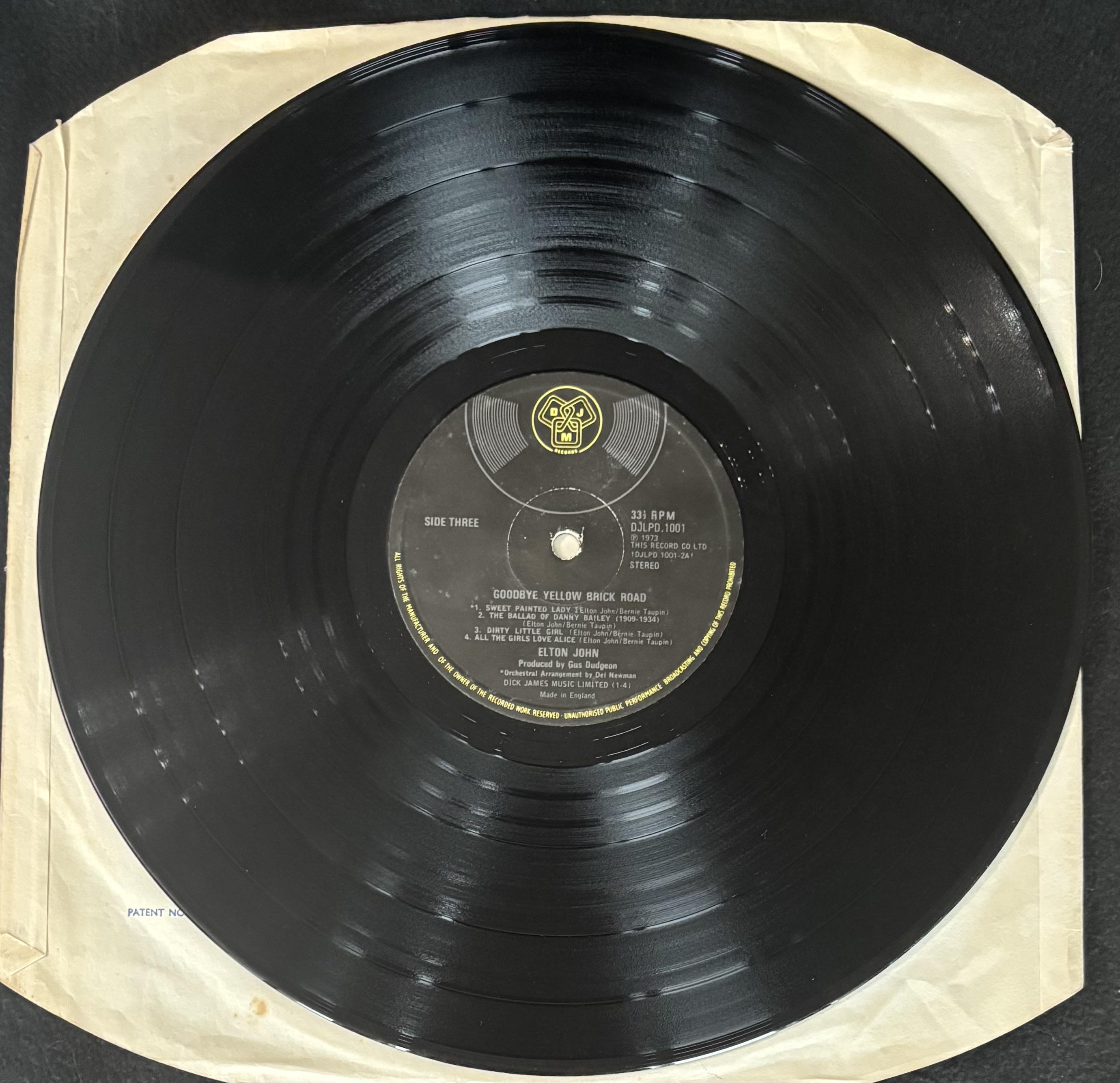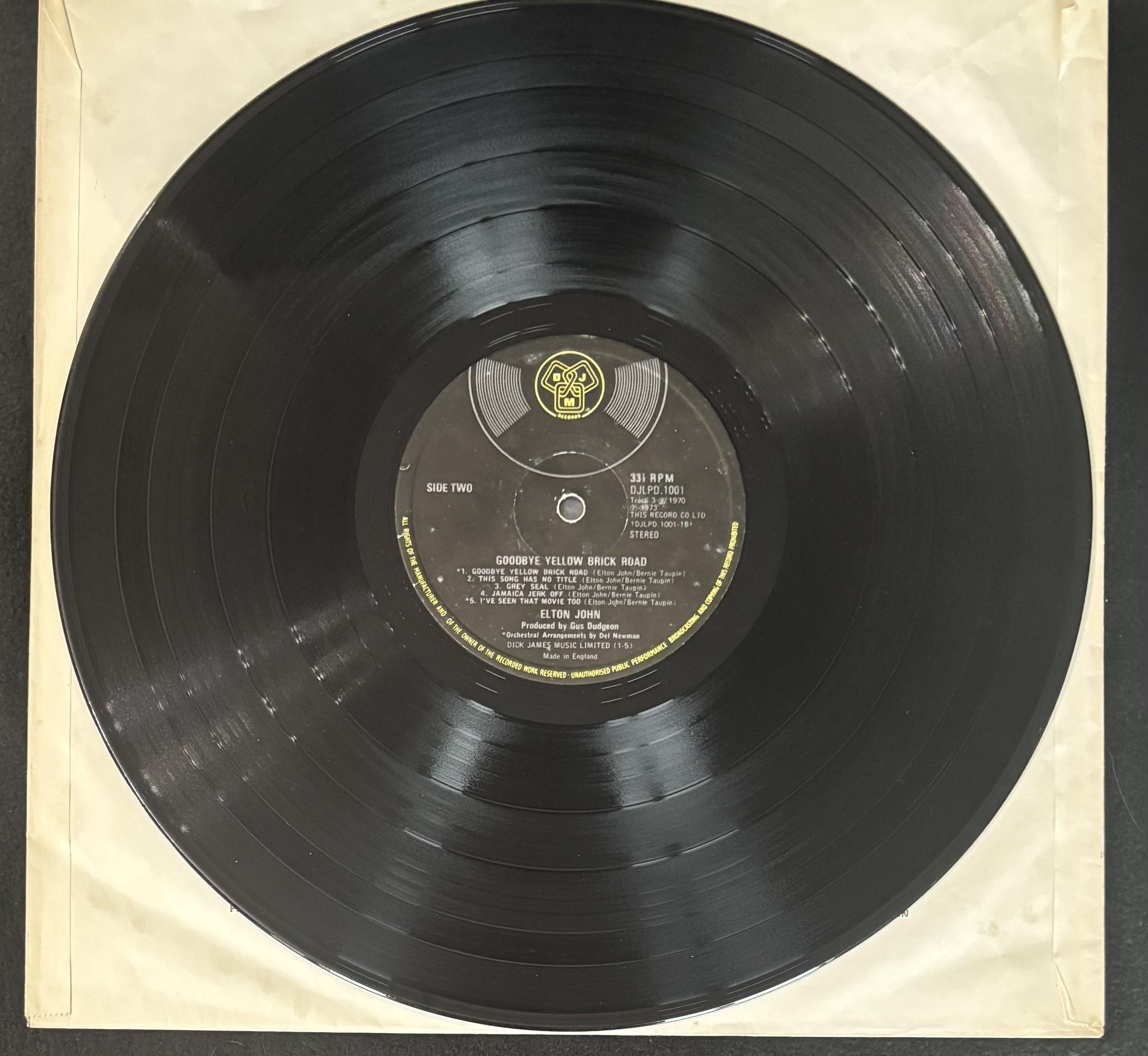 "Goodbye Yellow Brick Road" original 1973 UK first pressing vinyl record album cover has been hand-signed by Elton John. Vinyl records are included as shown.