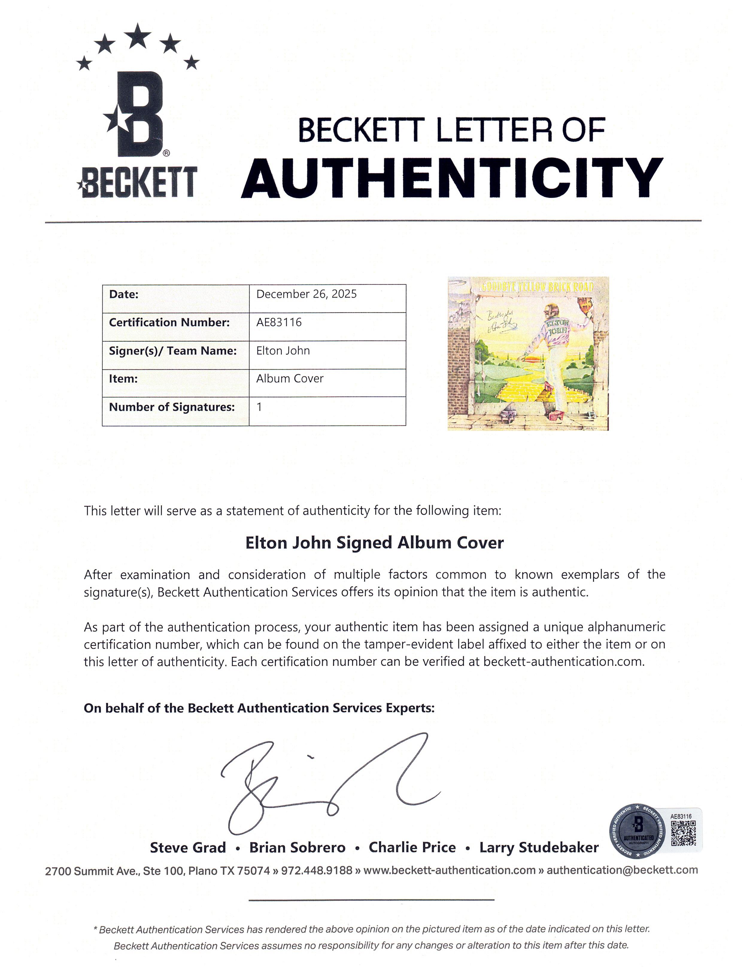 Elton John Signed 1973 "Goodbye Yellow Brick Road" UK First Pressing Album Inscribed "Best Wishes" (Beckett)