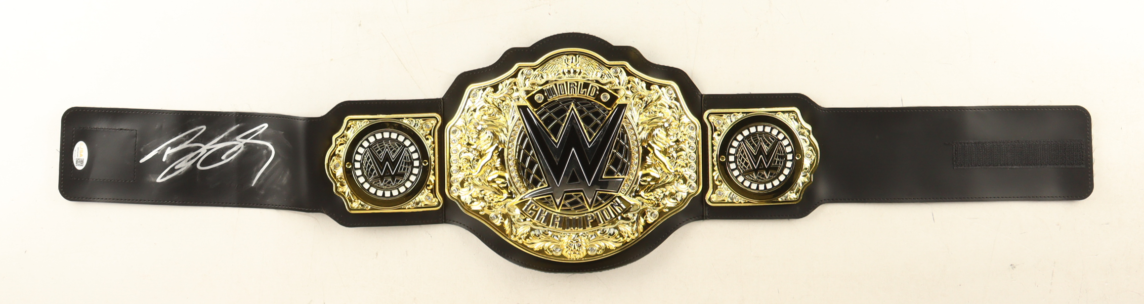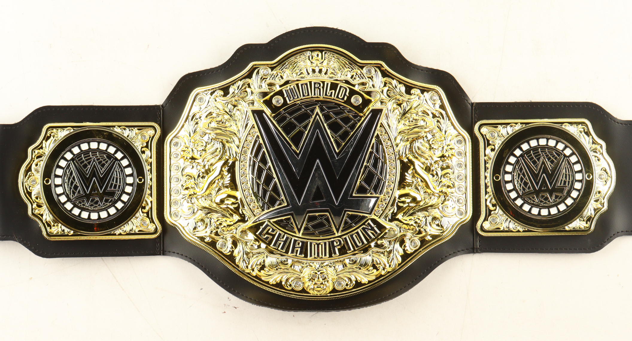 Replica WWE World Heavyweight Toy Championship Belt measures approximately 37" in length and has been hand-signed by Bill Goldberg (HOF). Please note the signature is heavily smudged, see photos for details regarding the condition of the belt.