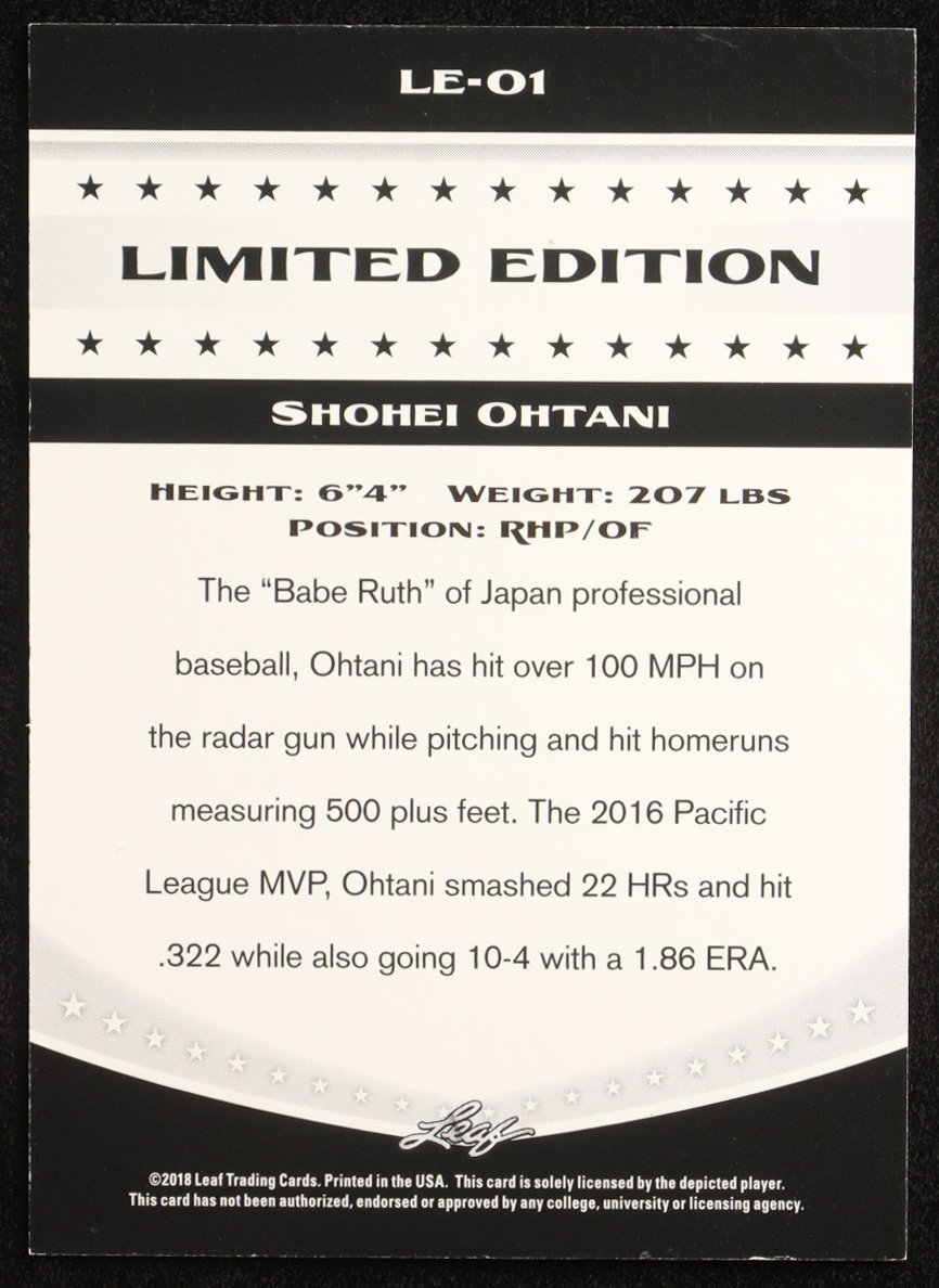 Shohei Ohtani 2018 Leaf Ohtani Limited Edition #LE01 RC