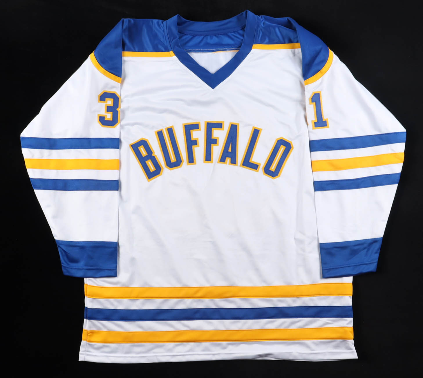 Custom jersey with everything sewn on, size XL. Has been hand-signed by Grant Fuhr (HOF).