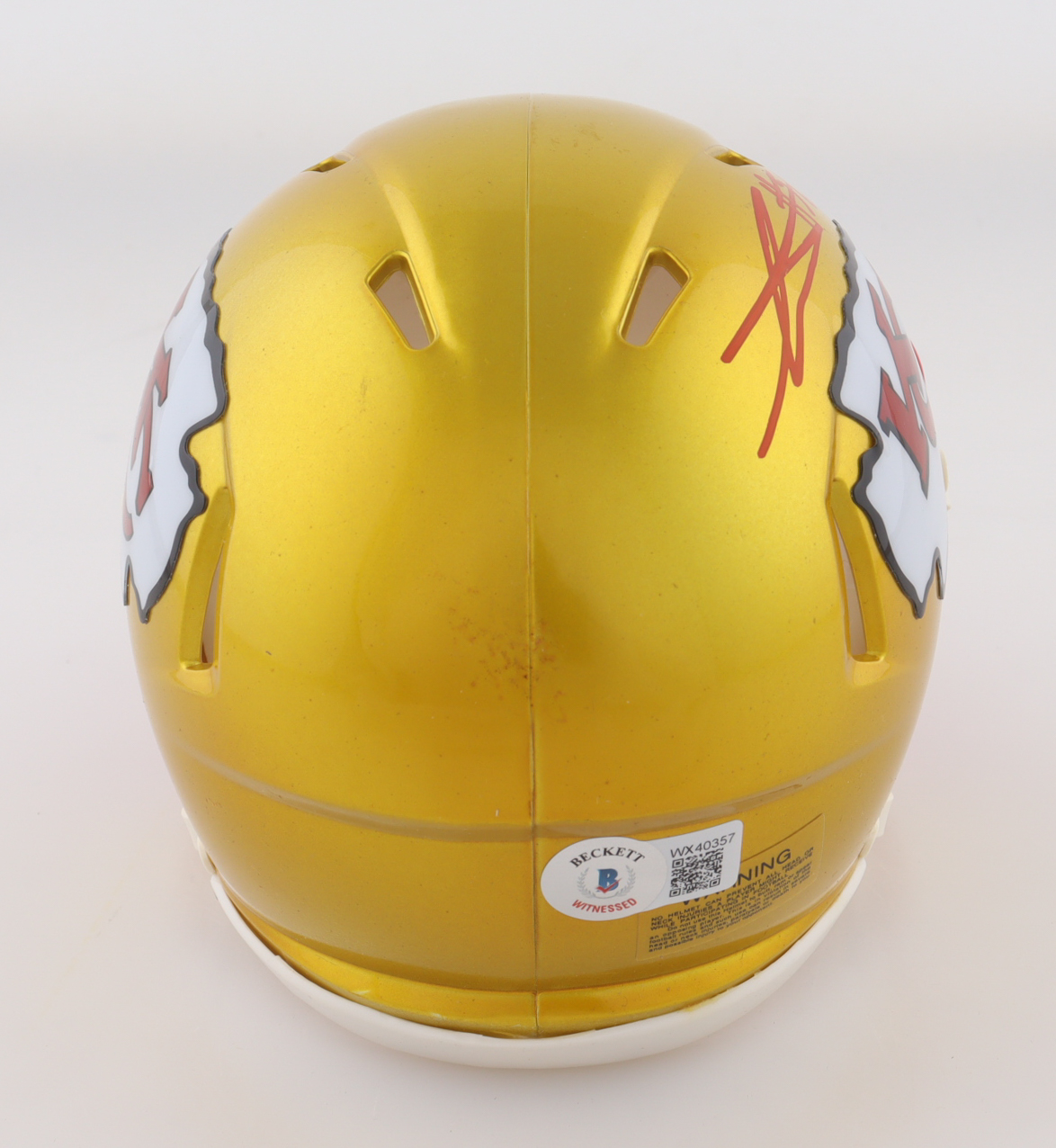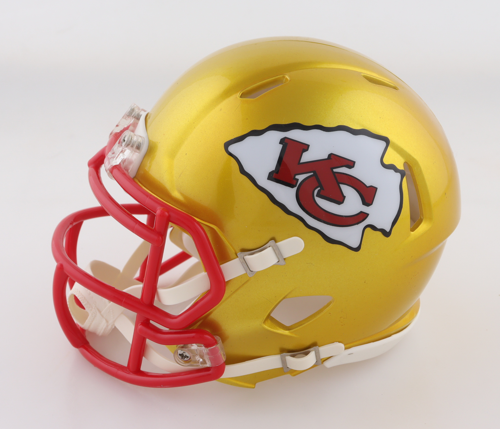 Riddell Kansas City Chiefs Flash Alternate Speed mini helmet. Hand-signed by George Karlaftis. Please note the residue on the helmet.