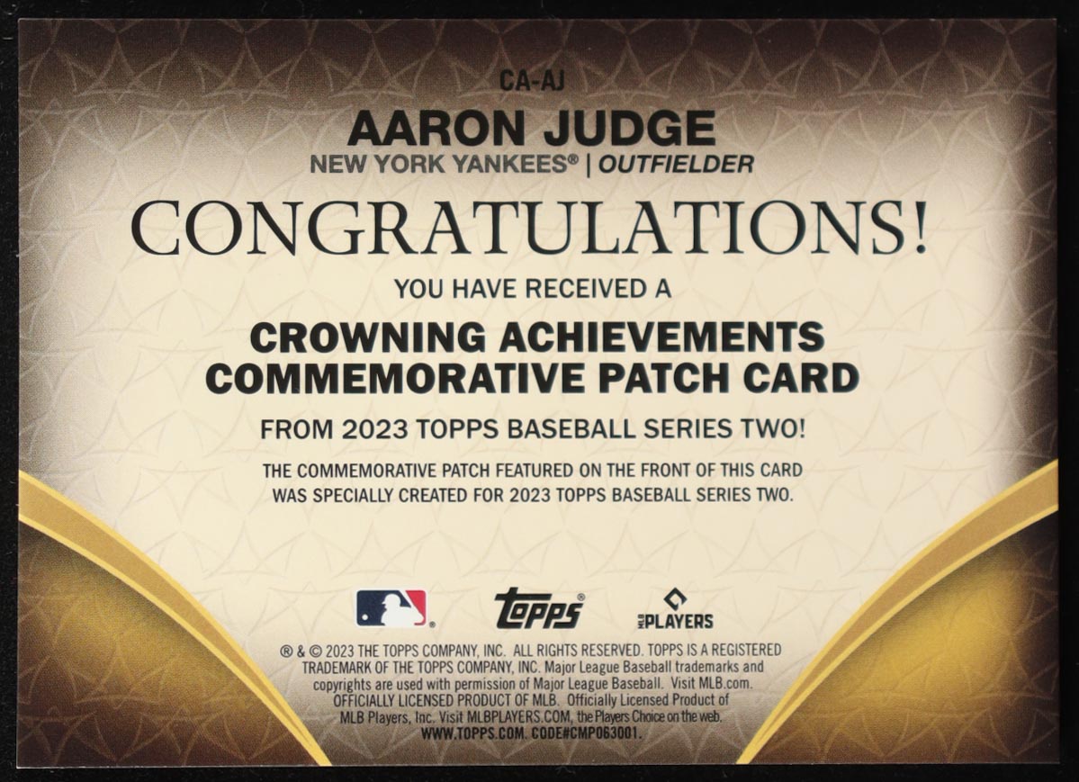 Aaron Judge 2023 Topps Crowning Achievements Commemorative Patches #CAAJ
