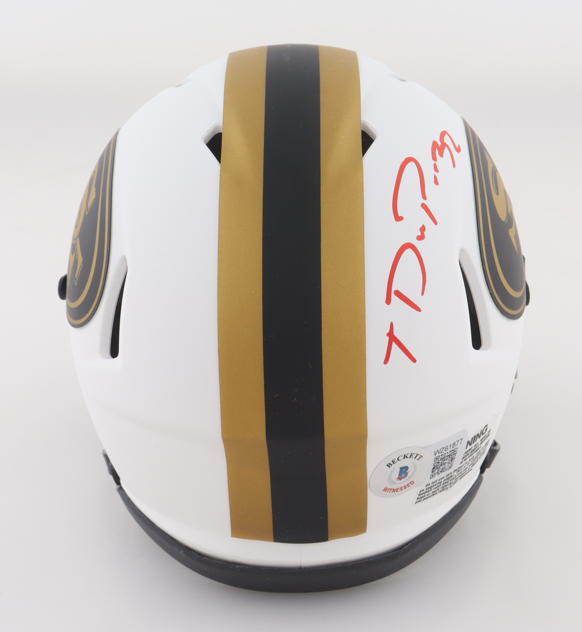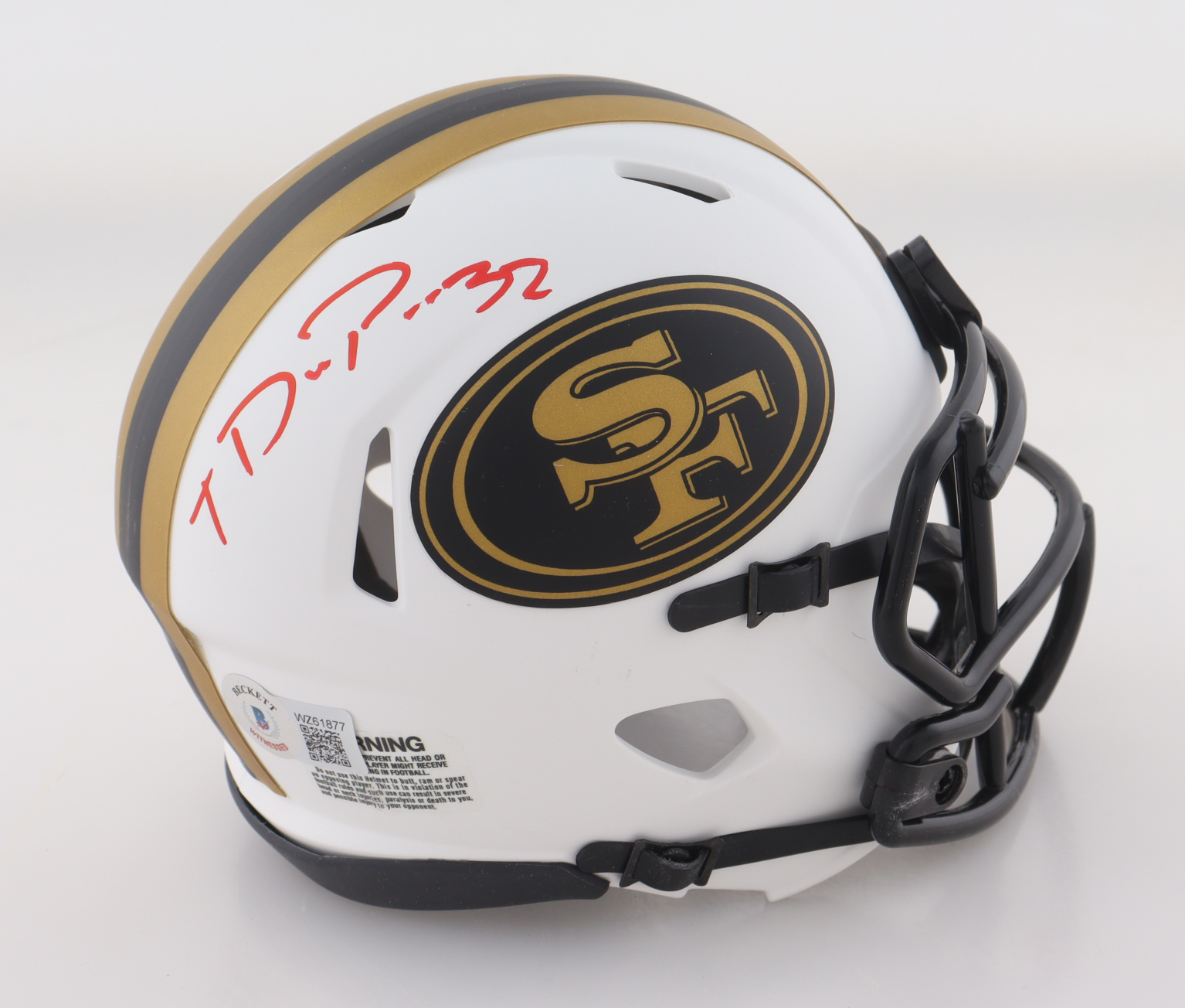 Riddell San Francisco 49ers Lunar Eclipse Alternate Speed mini helmet has been hand-signed by Tyrion Davis-Price.