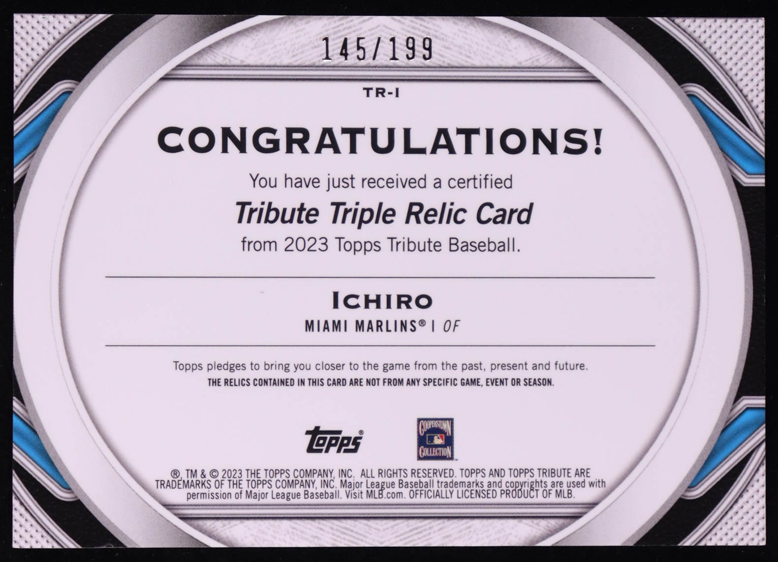 Ichiro 2023 Topps Tribute Triple Relics #TRI #145/199