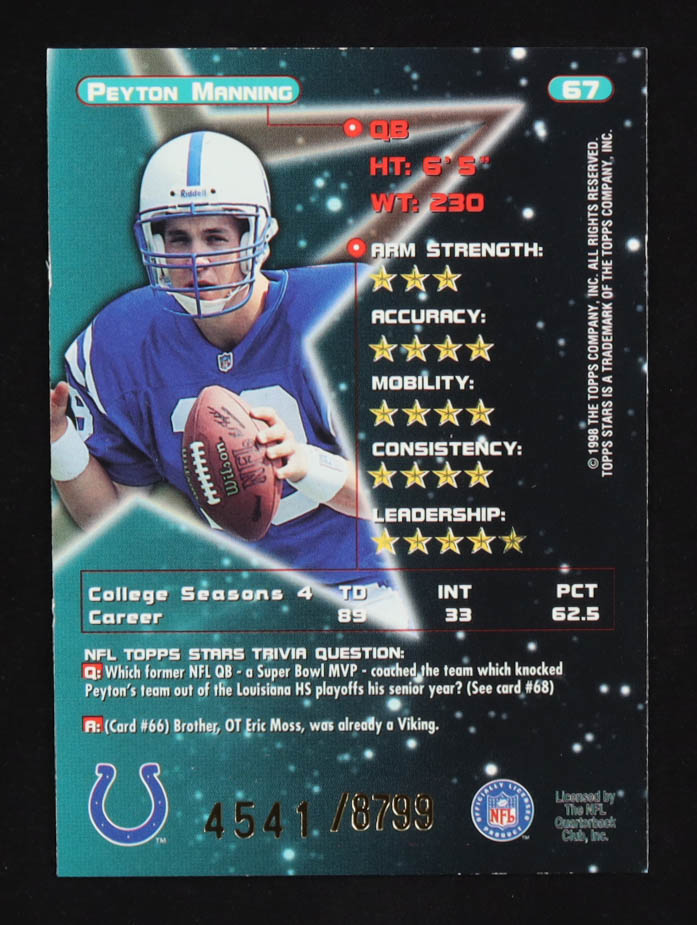 Peyton Manning 1998 Topps NFL Stars #67 RC #4541/8799