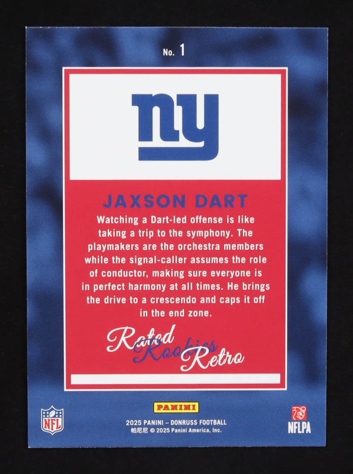 Jaxson Dart 2025 Panini Donruss Rated Rookies Retro #1 RC