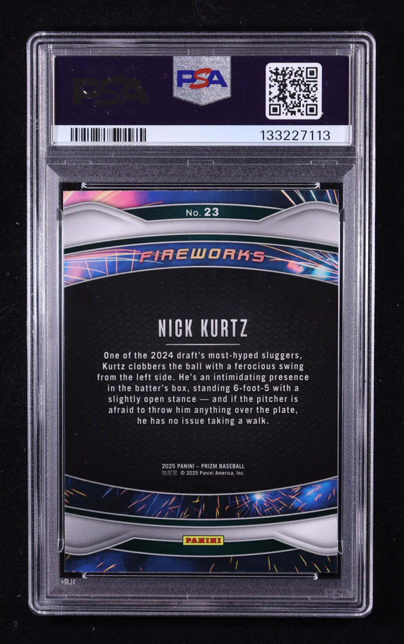 Nick Kurtz 2025 Panini Prizm Fireworks #23 RC (PSA 9)