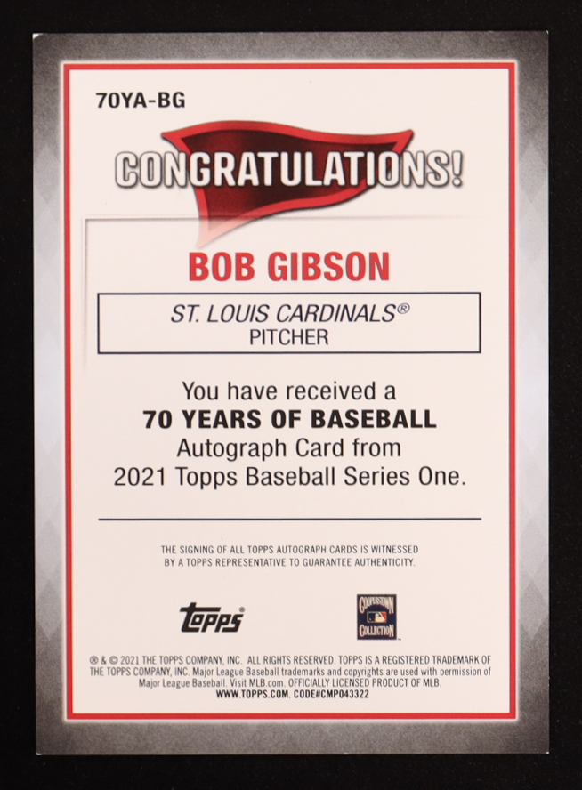 Bob Gibson 2021 Topps 70 Years of Baseball Autographs #70YABG
