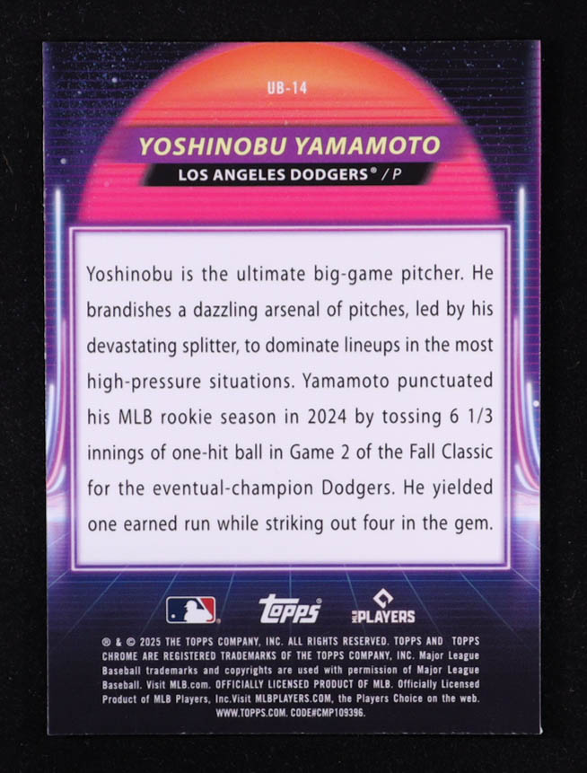 Yoshinobu Yamamoto 2025 Topps Cosmic Chrome Ultraviolet Beam #UB14