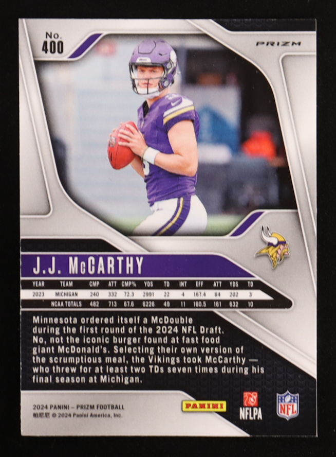 J.J. McCarthy 2024 Panini Prizm Prizms Red White and Blue #400 RC