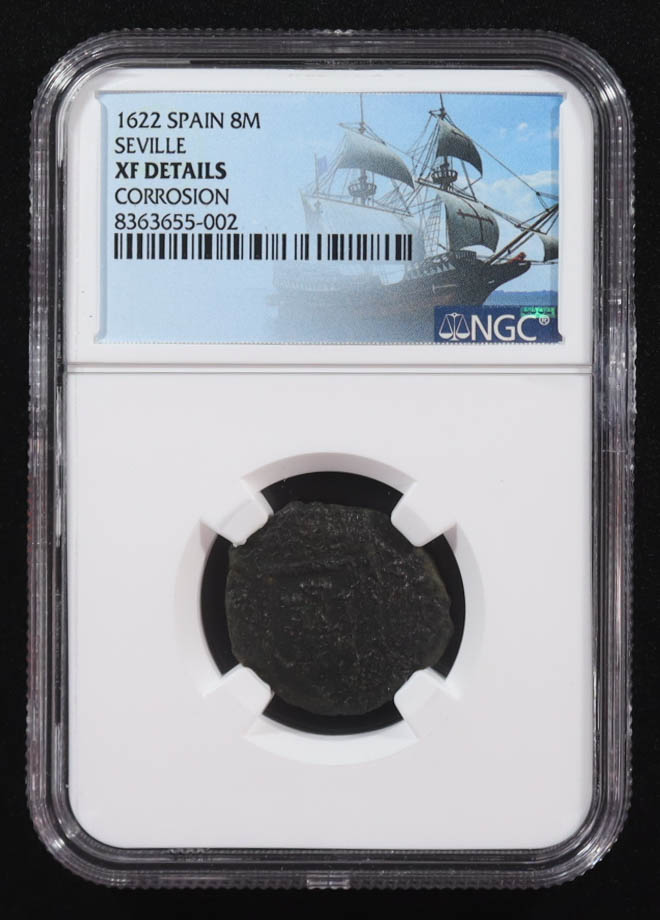 Philip IV 1622 Colonial Era Spain 8 Maravedis Copper Coin Seville Mint (NGC XF Details)