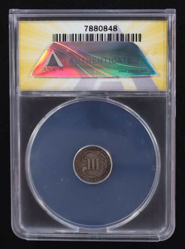Mint Error 1852 Silver Three-Cent Piece Rim Clip (ANACS F15)