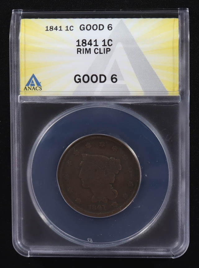 Mint Error 1841 Braided Hair Cent Rim Clip (ANACS G06)