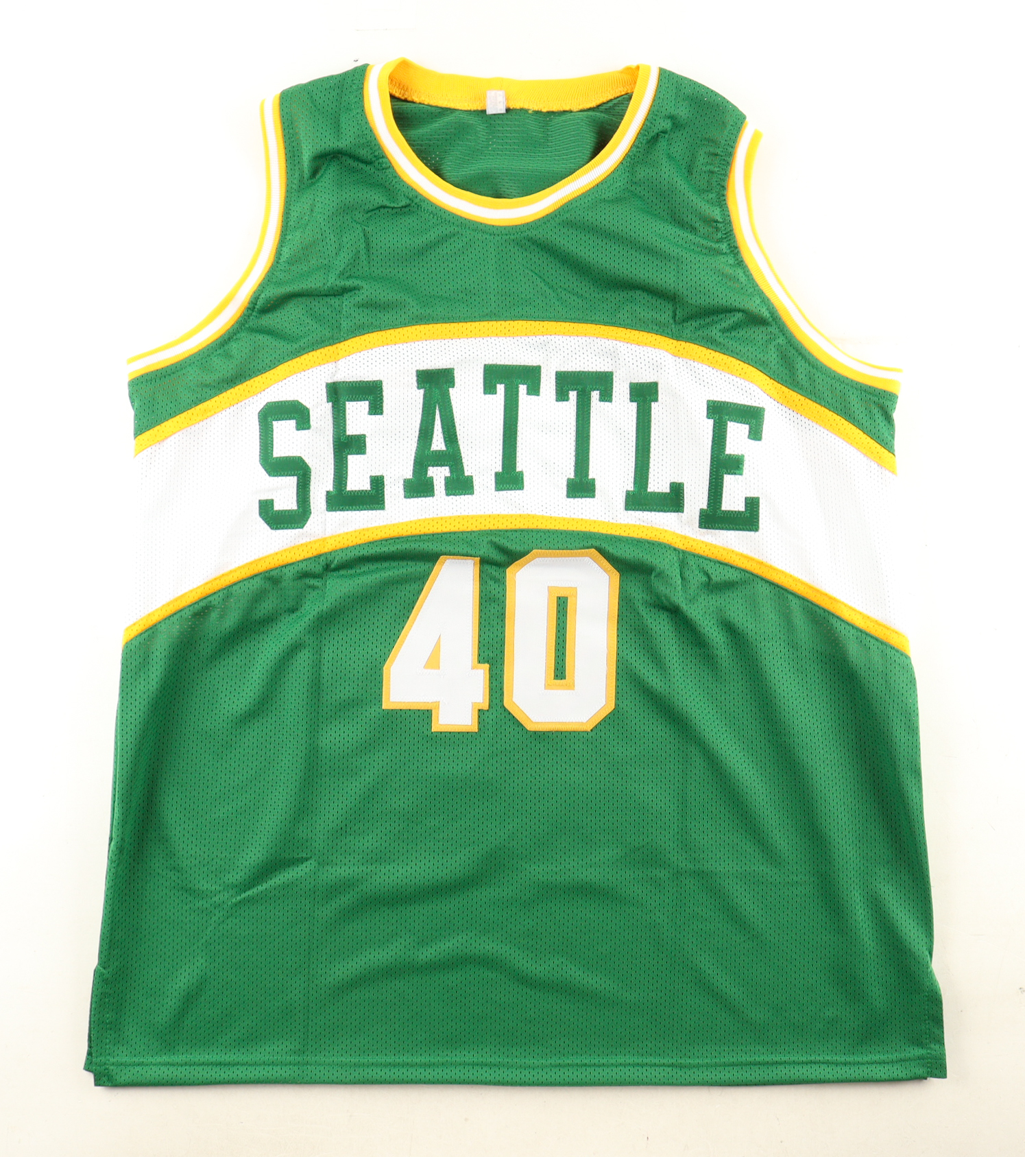 Custom jersey with everything sewn on, size XL. Hand-signed by Shawn Kemp.
