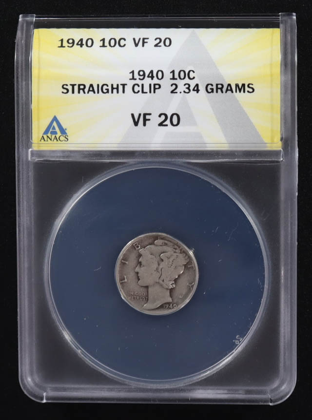Mint Error 1940 Mercury Dime Straight Clip 2.34 Grams (ANACS VF20)