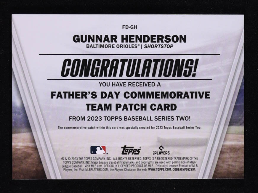 Gunnar Henderson 2023 Topps Father's Day Commemorative Team Patches #FDGH RC
