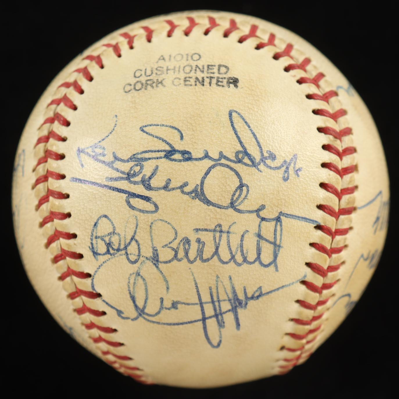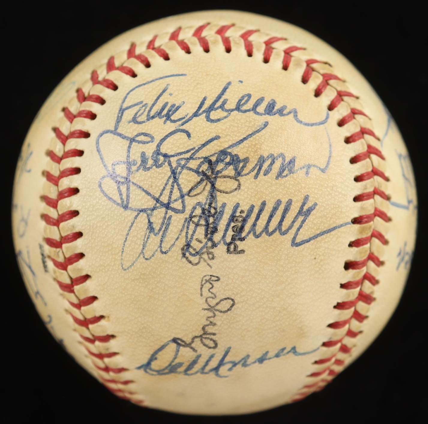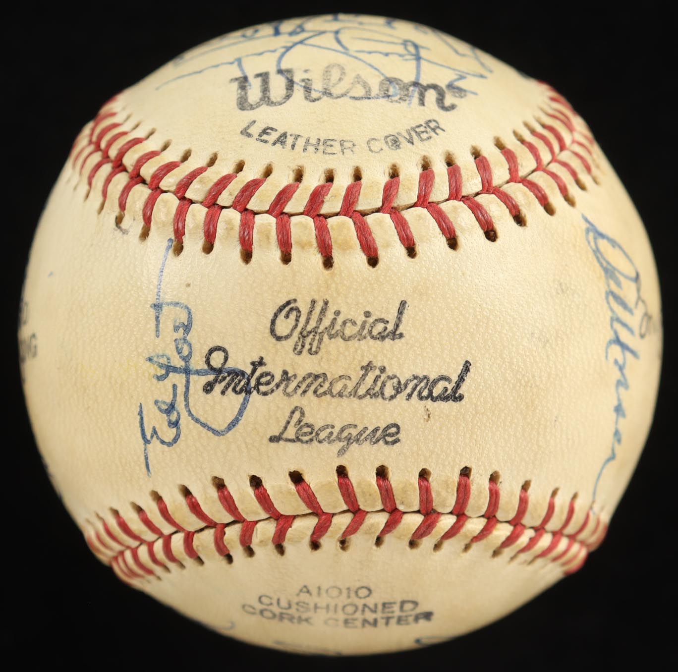 Wilson Official International League Baseball. Hand-signed by (17) with Joe Pignatano, Eddie Yost, Jerry Koosman, Tom Seaver, John Stearns, George Stone, Roy Staiger, Ken Sanders, Felix Millan, Hank Webb and (7) others. Note that the display case is included in the listing. Please see photos for more details regarding the condition of item.