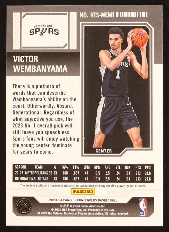 Victor Wembanyama 2023-24 Panini Contenders Rookie Ticket Swatches #6 RC