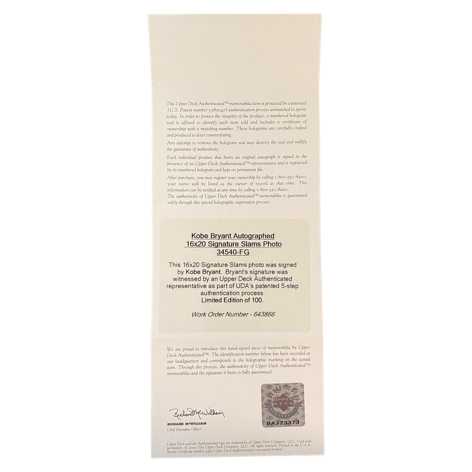 Kobe Bryant Signed LE Lakers "Signature Slam" Custom Framed Photo (UDA)