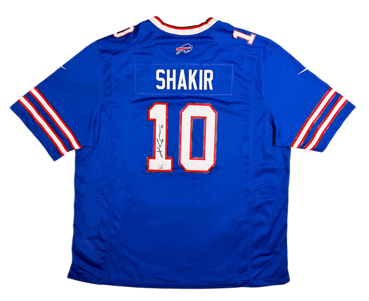 Nike jersey with everything pressed on, size 48. Hand-signed by Khalil Shakir (Buffalo Bills).