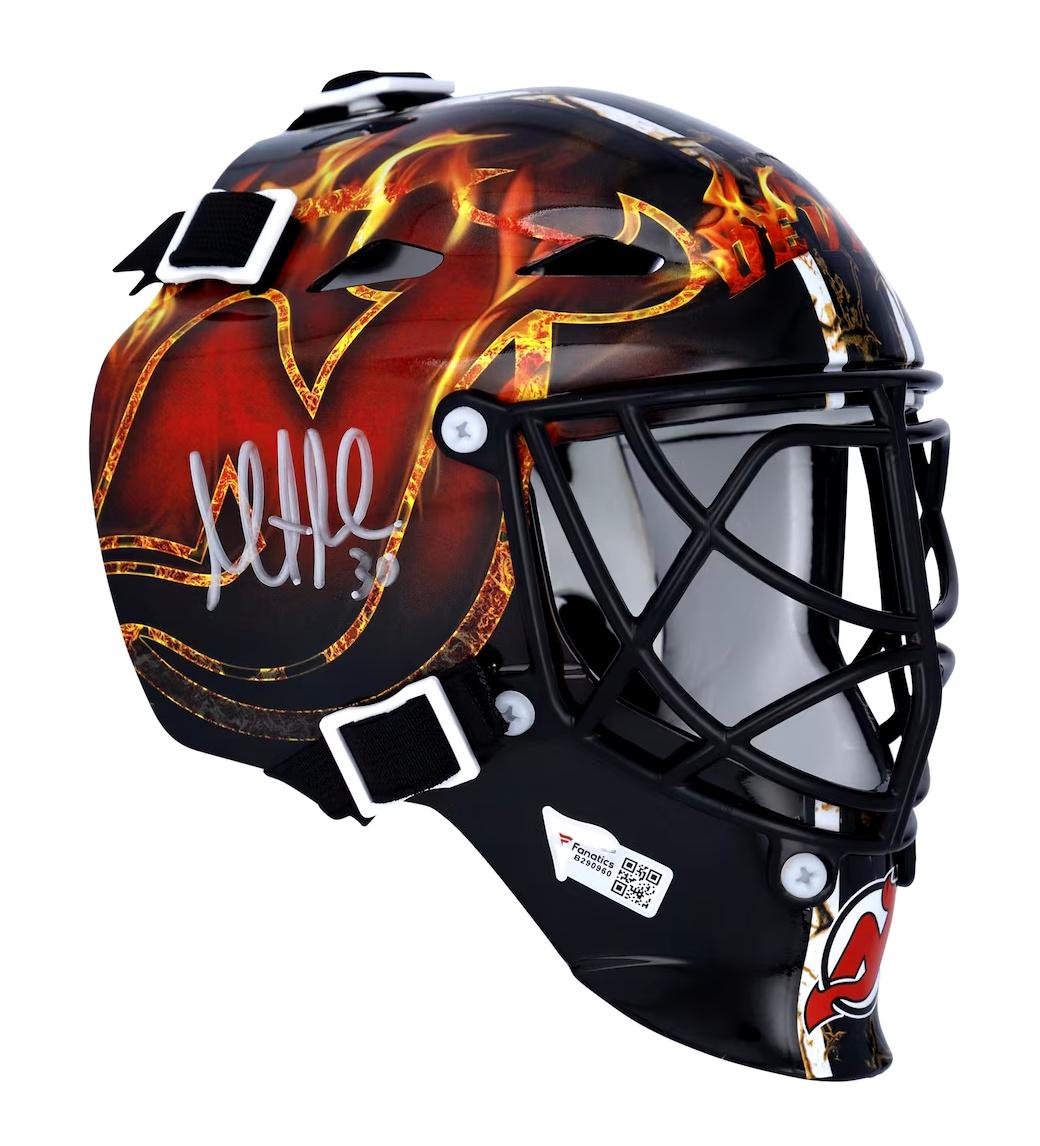 Franklin New Jersey Devils mini helmetgoalie mask. Has been hand-signed by Martin Brodeur (HOF).