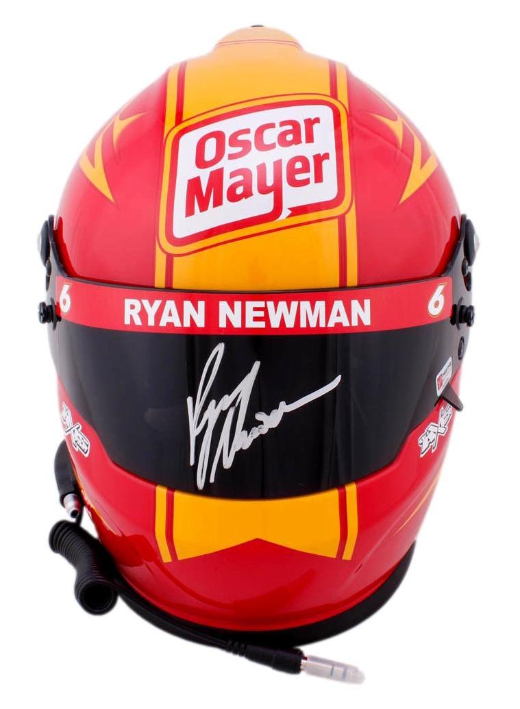 Full-size replica NASCAR helmet is hand-signed by Ryan Newman.