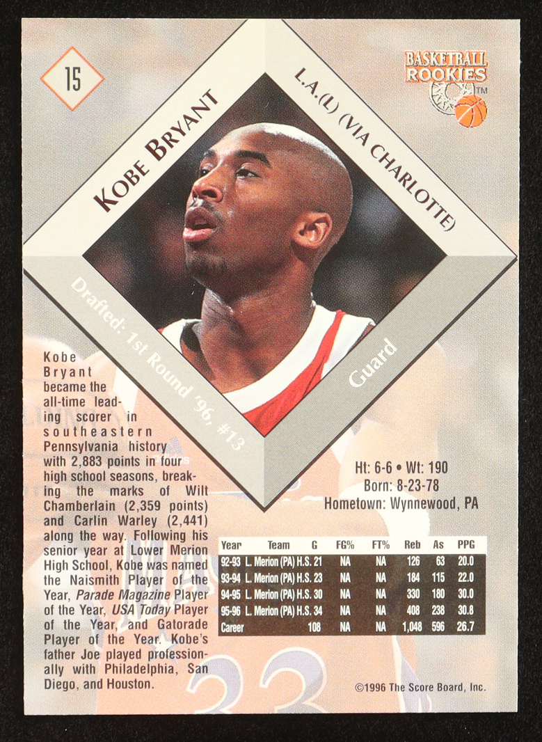 Kobe Bryant 1996 Score Board Rookies #15 RC