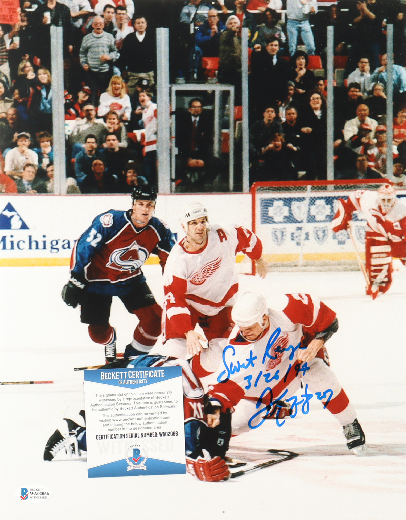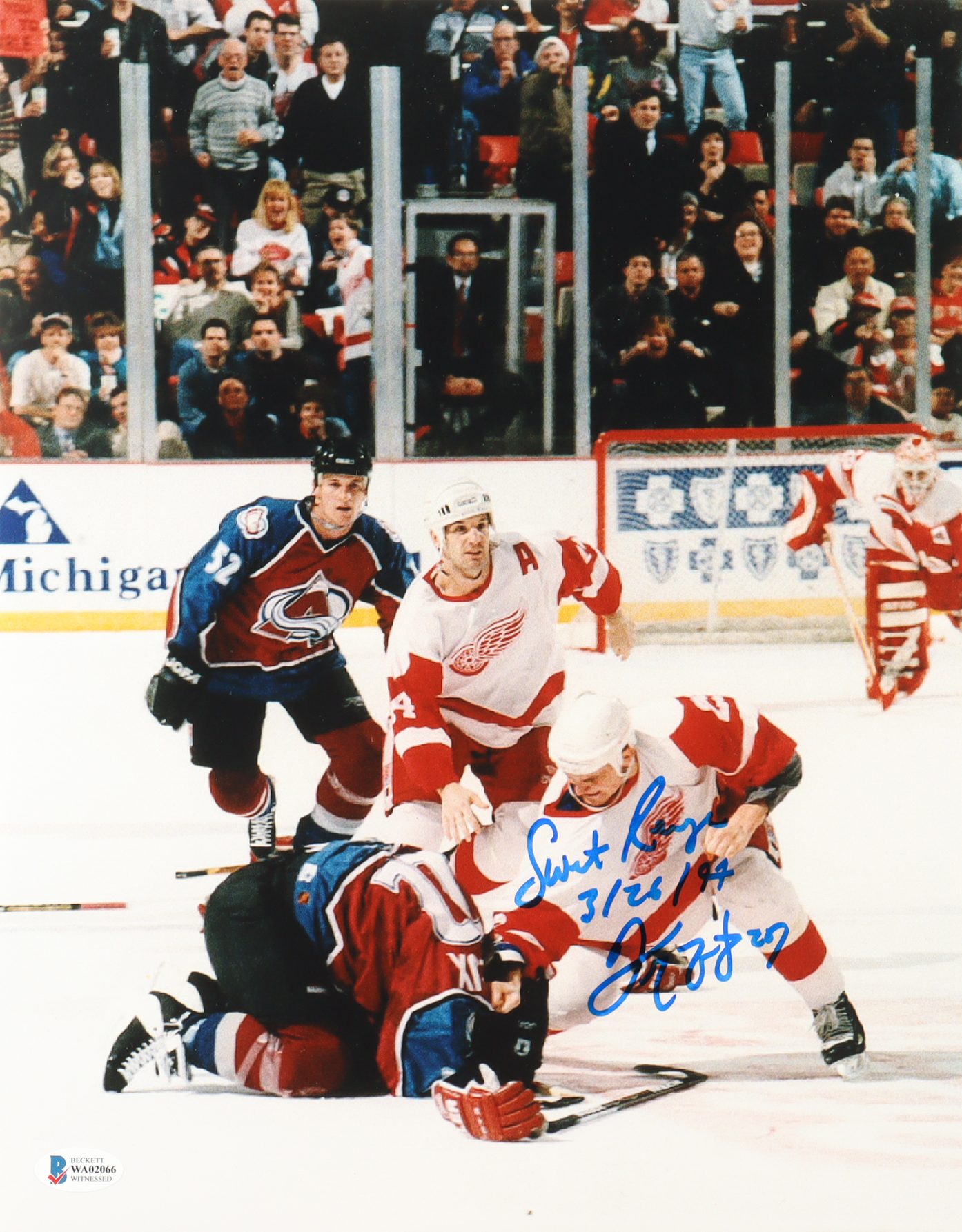 Darren McCarty Signed Red Wings 11x14 Photo Inscribed "Sweet Revenge 3/26/97" (Beckett)