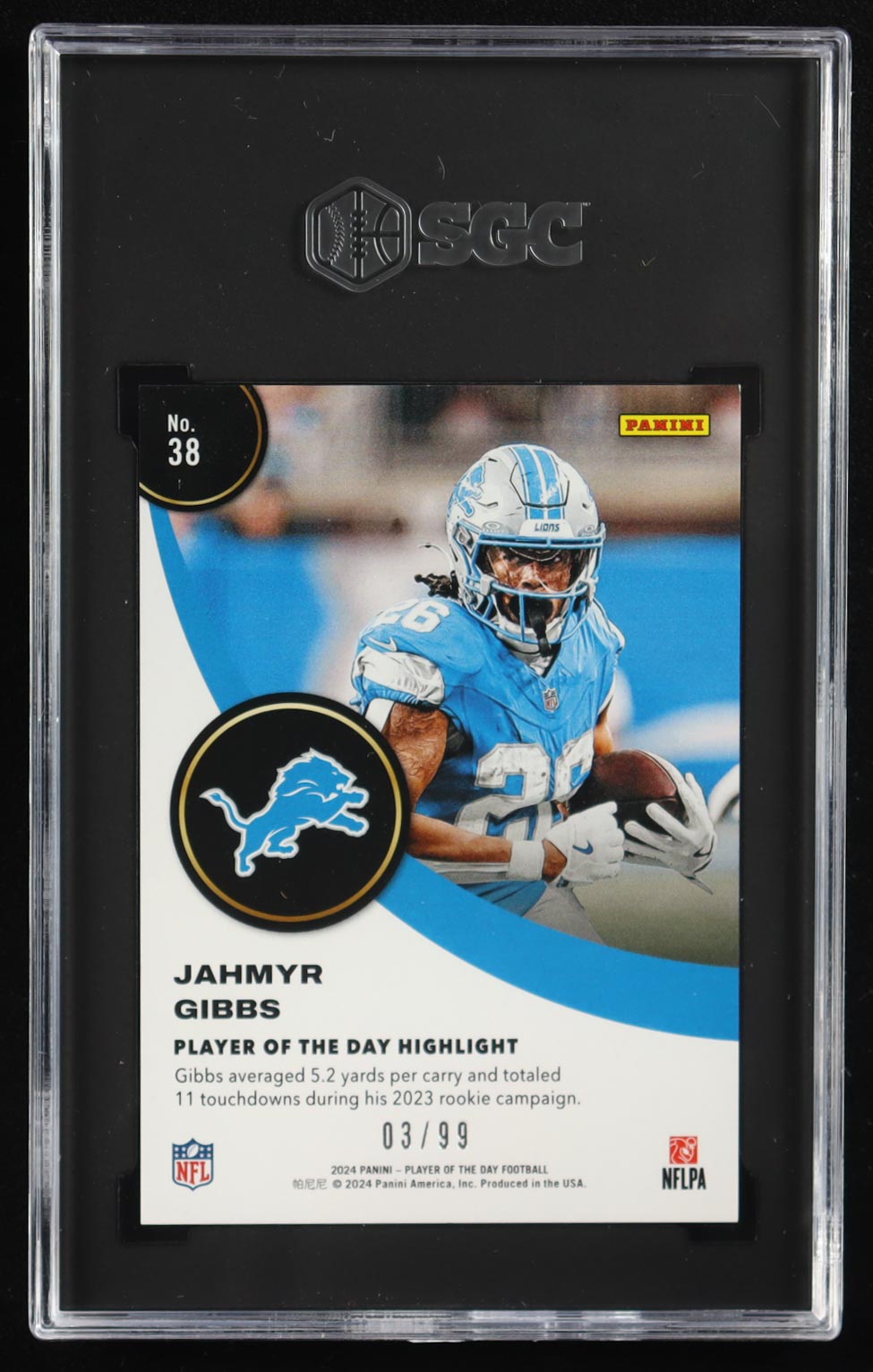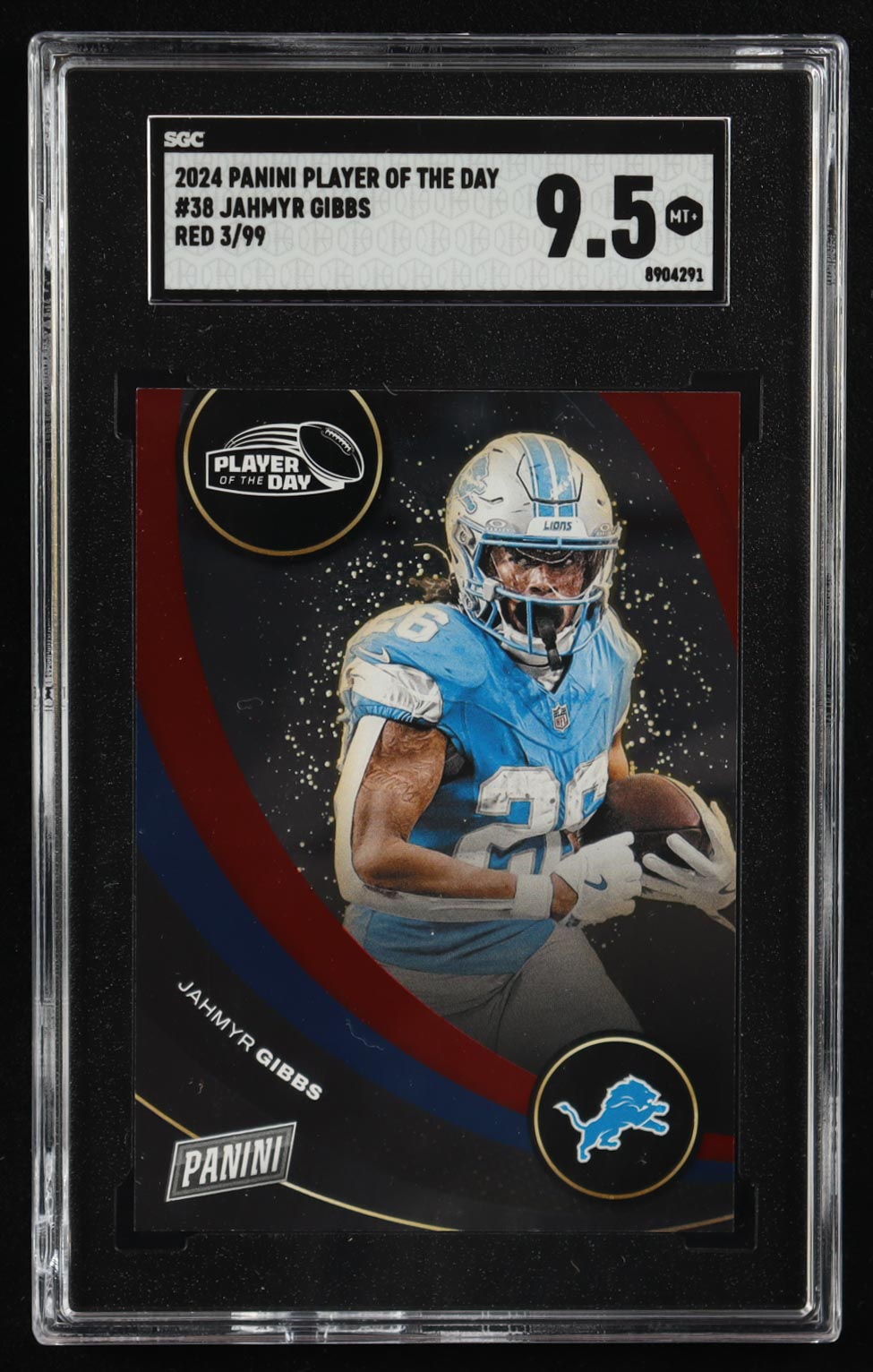 Jahmyr Gibbs 2024 Panini Player of the Day Red #38 #03/99 (SGC 9.5)