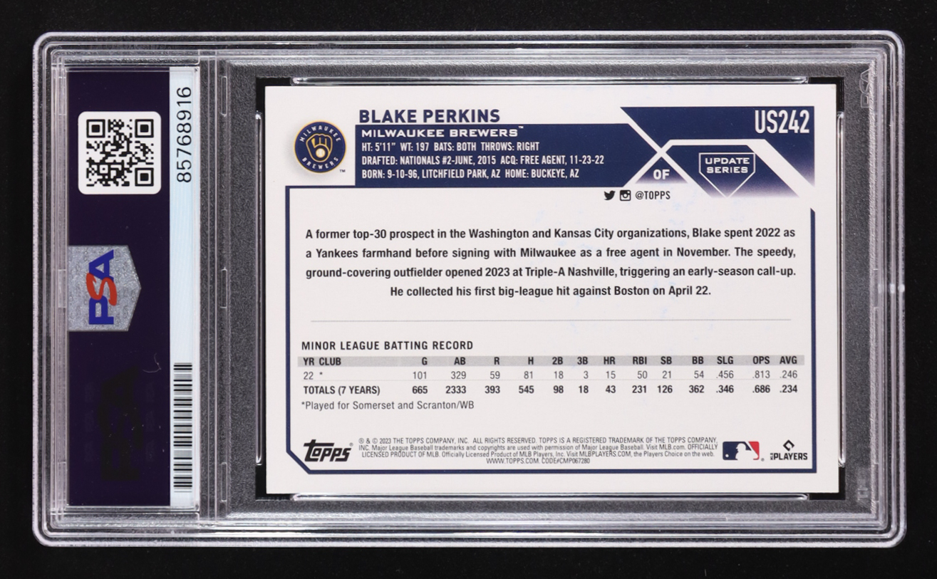 Blake Perkins Signed 2023 Topps Update Series #US-242 RC (PSA | Autograph Graded PSA 10)